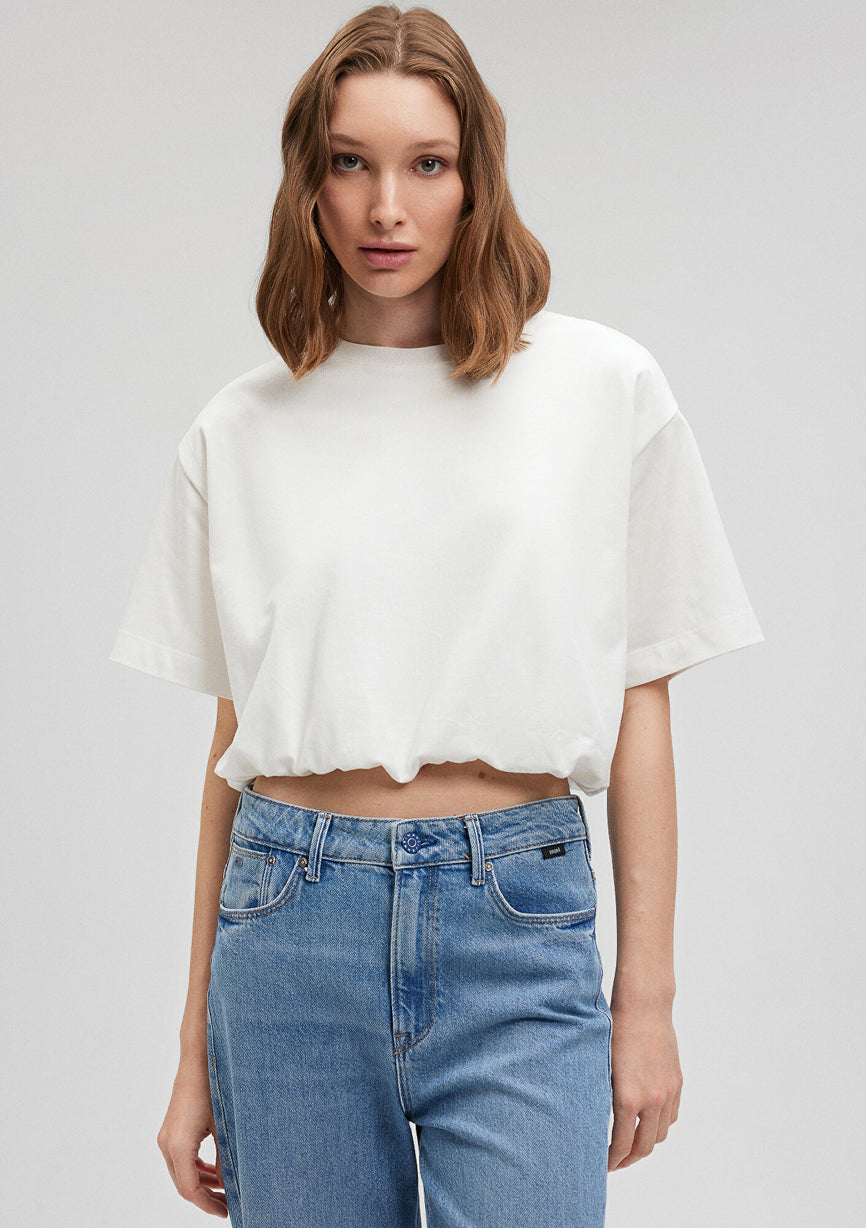 Elastic Detailed White T-Shirt