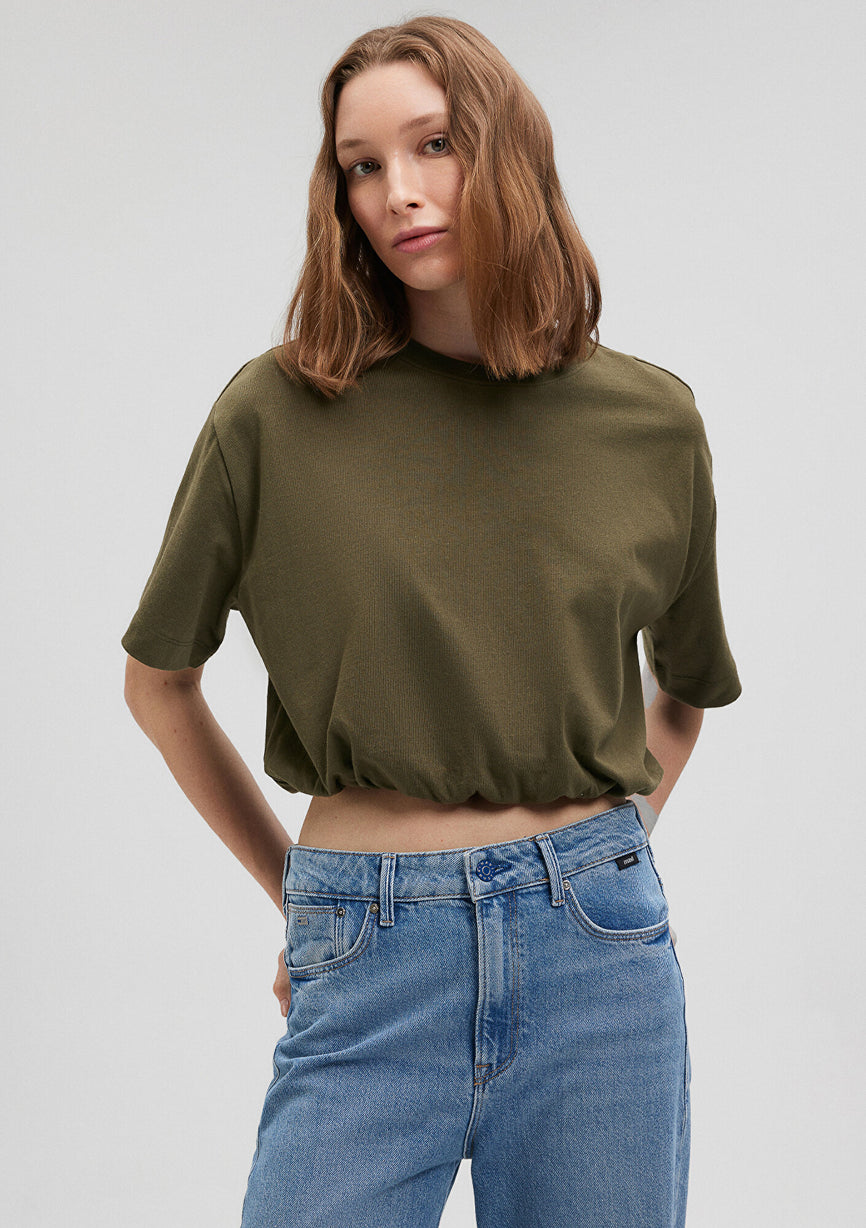 Elastic Detailed Green T-Shirt