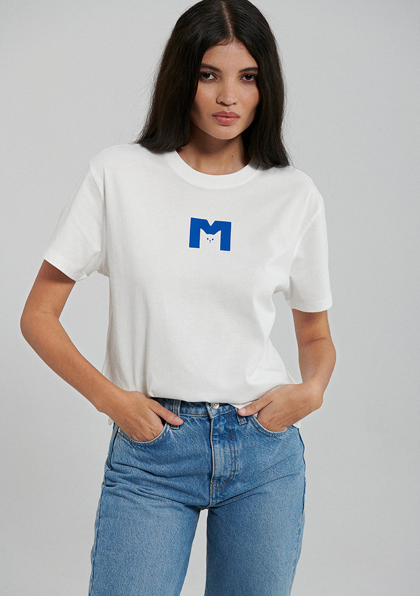 M Cat Printed White T-Shirt
