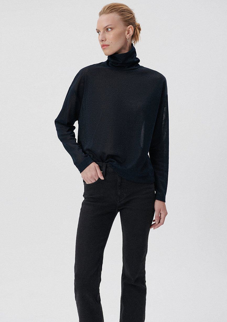High Neck Black T-Shirt