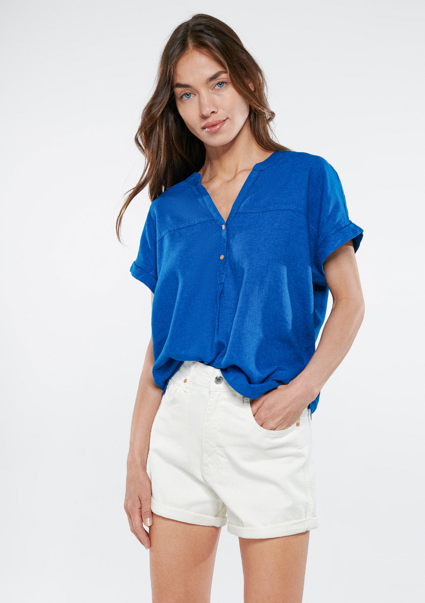 Linen Mix Blue Blouse