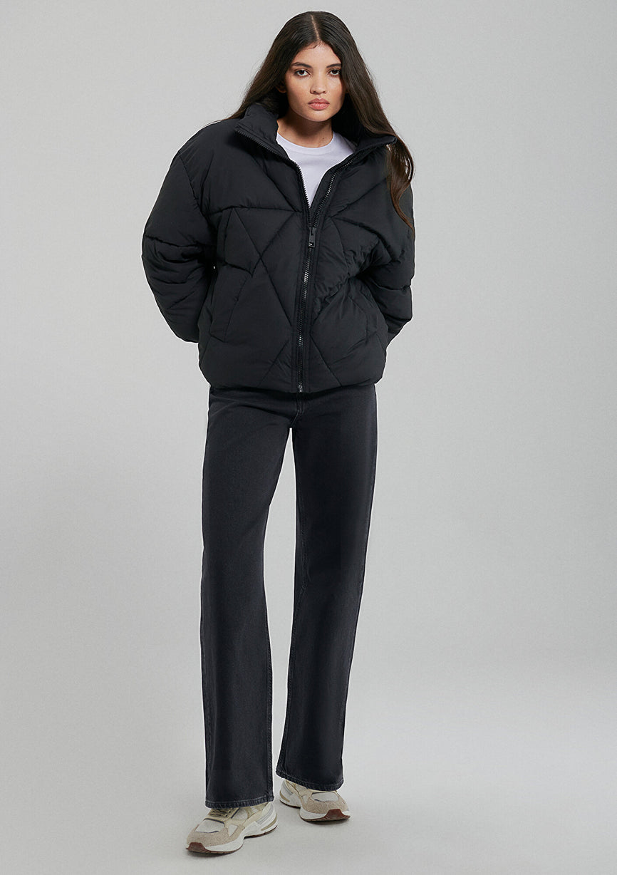Quilted High Neck Black Jacket