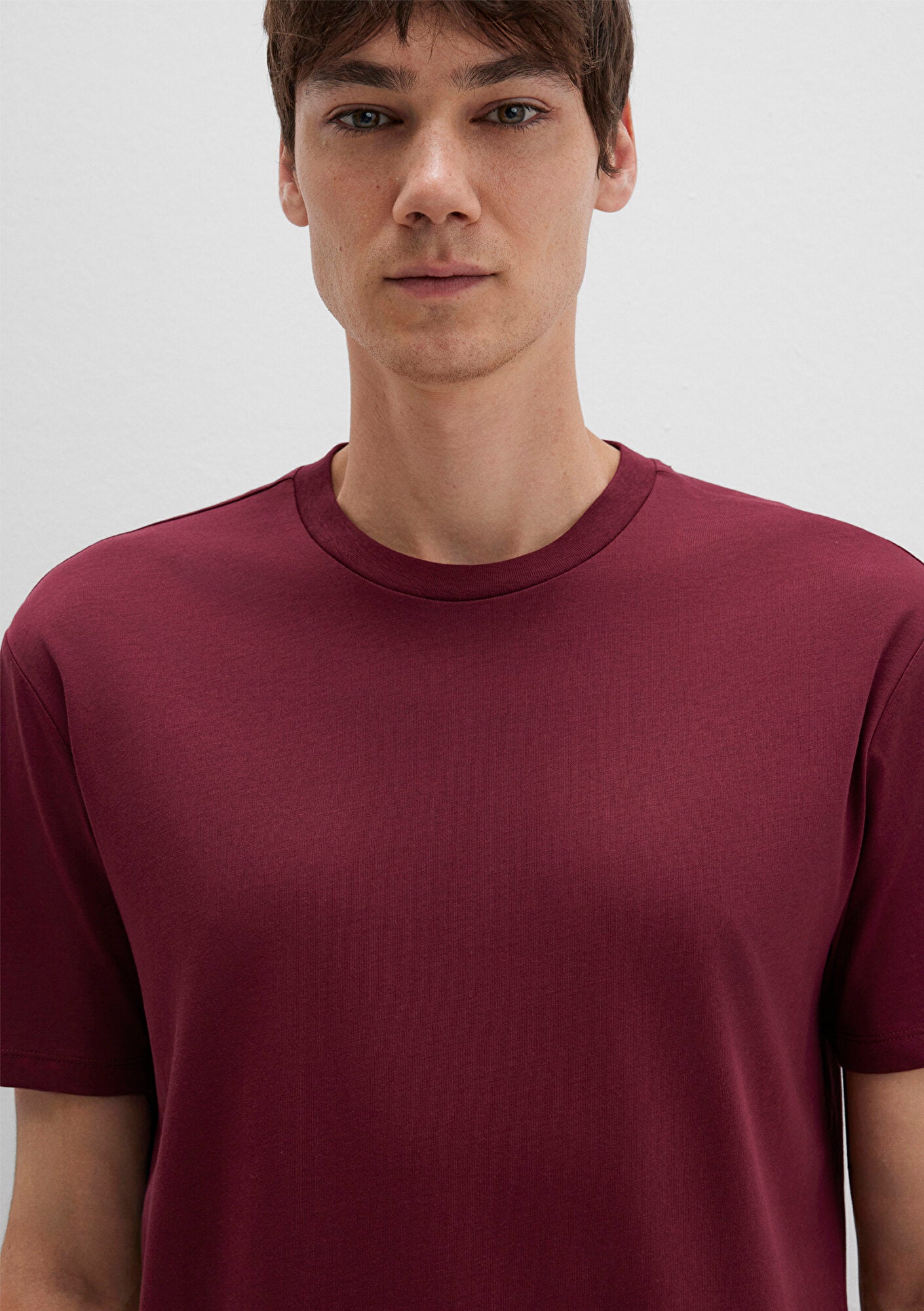 Crew Neck Burgundy Basic T-Shirt