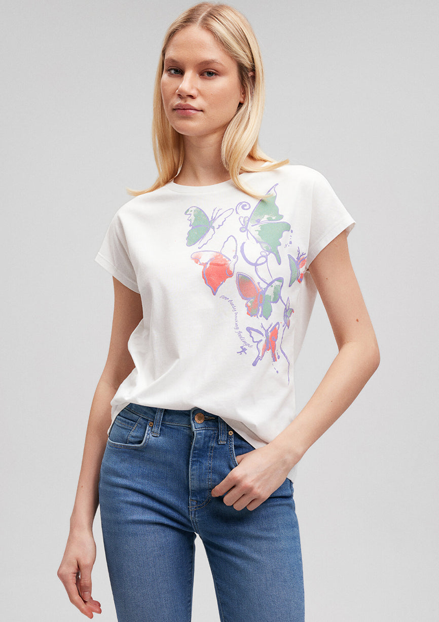 Butterfly Printed White T-Shirt