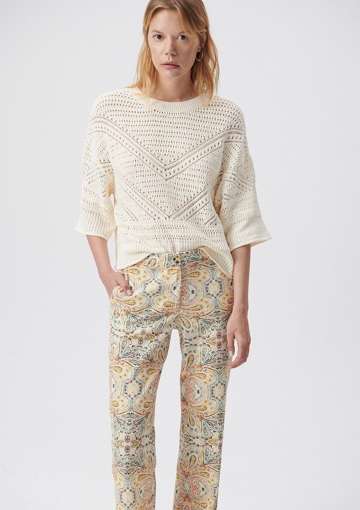 Hole Detailed Beige Sweater
