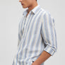 Linen Mix Striped Blue Shirt