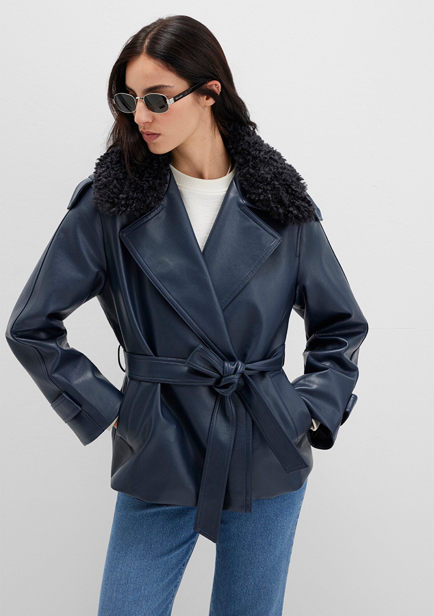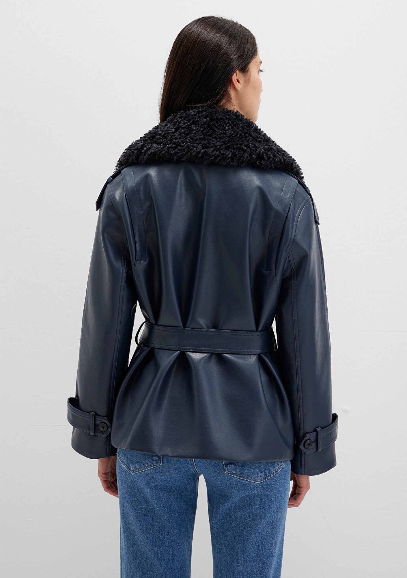 Navy Faux Leather Jacket