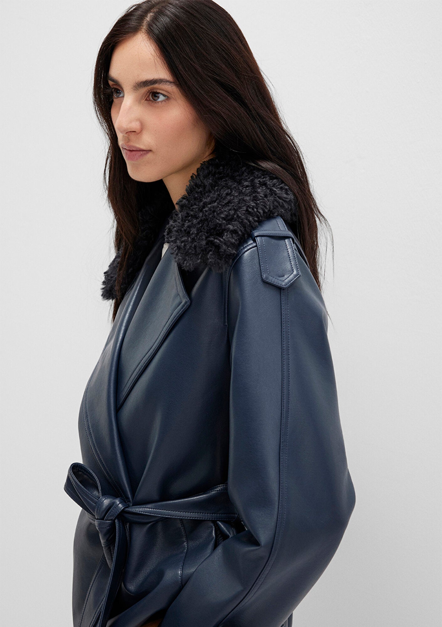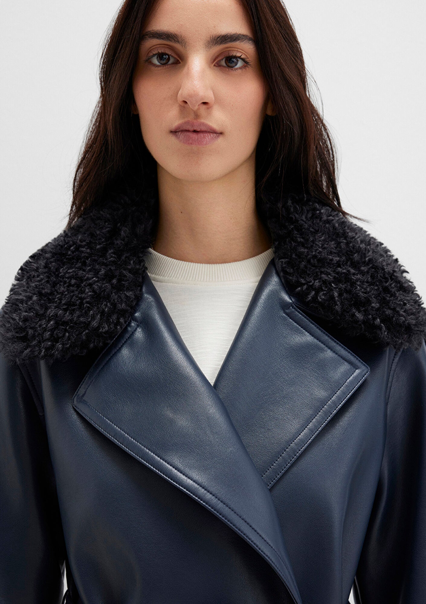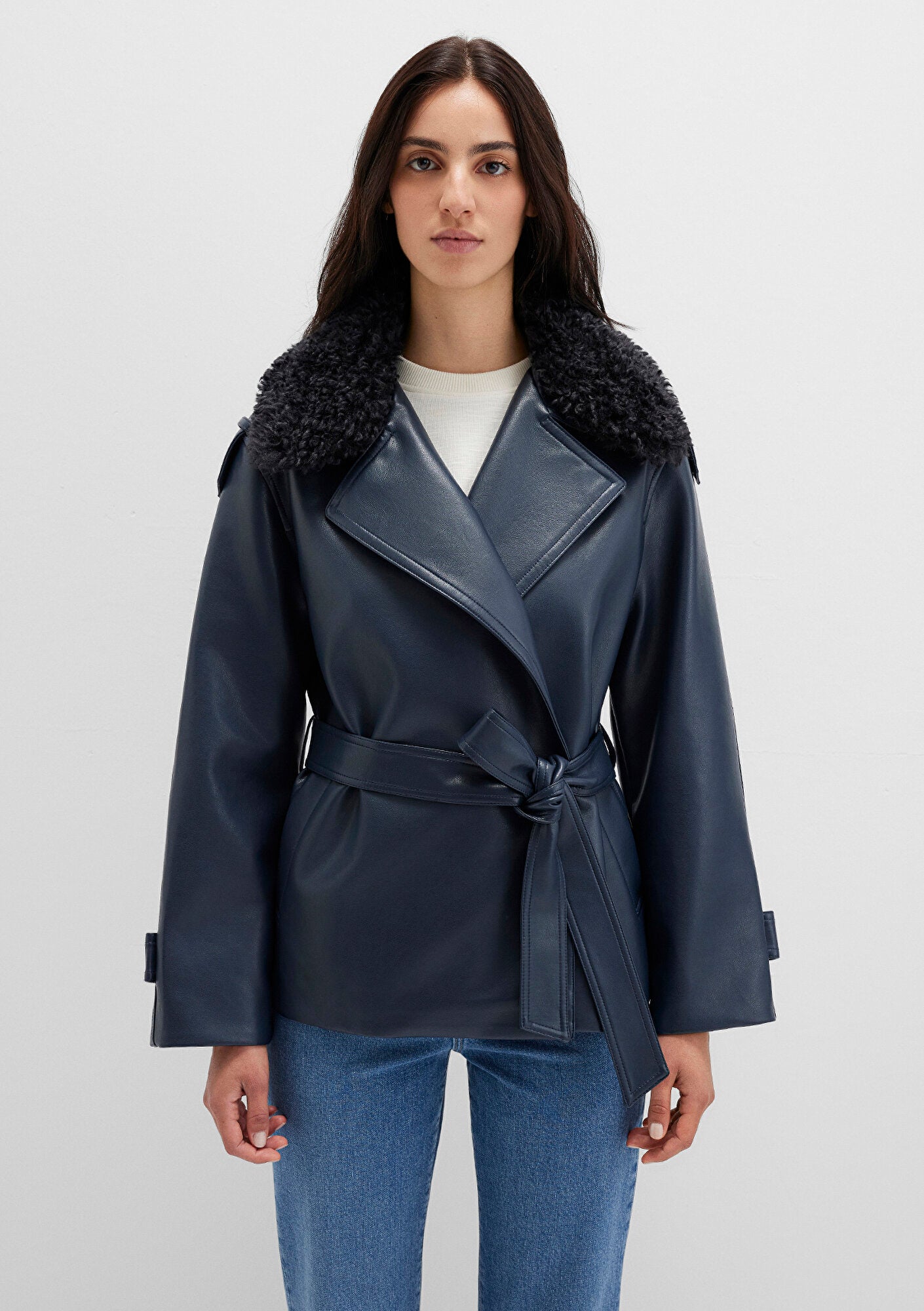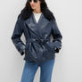 Navy Faux Leather Jacket from Mavi s womens collection.