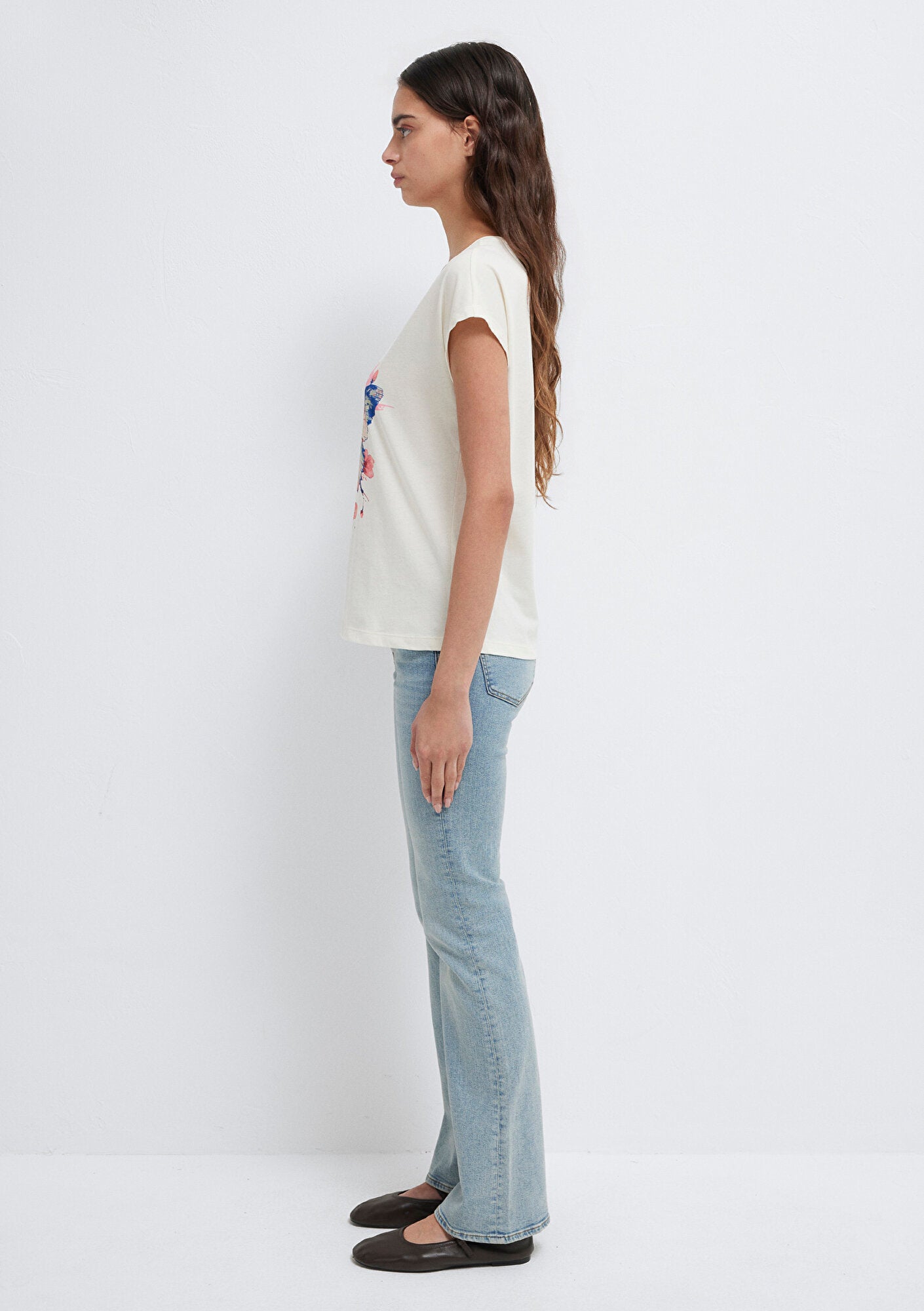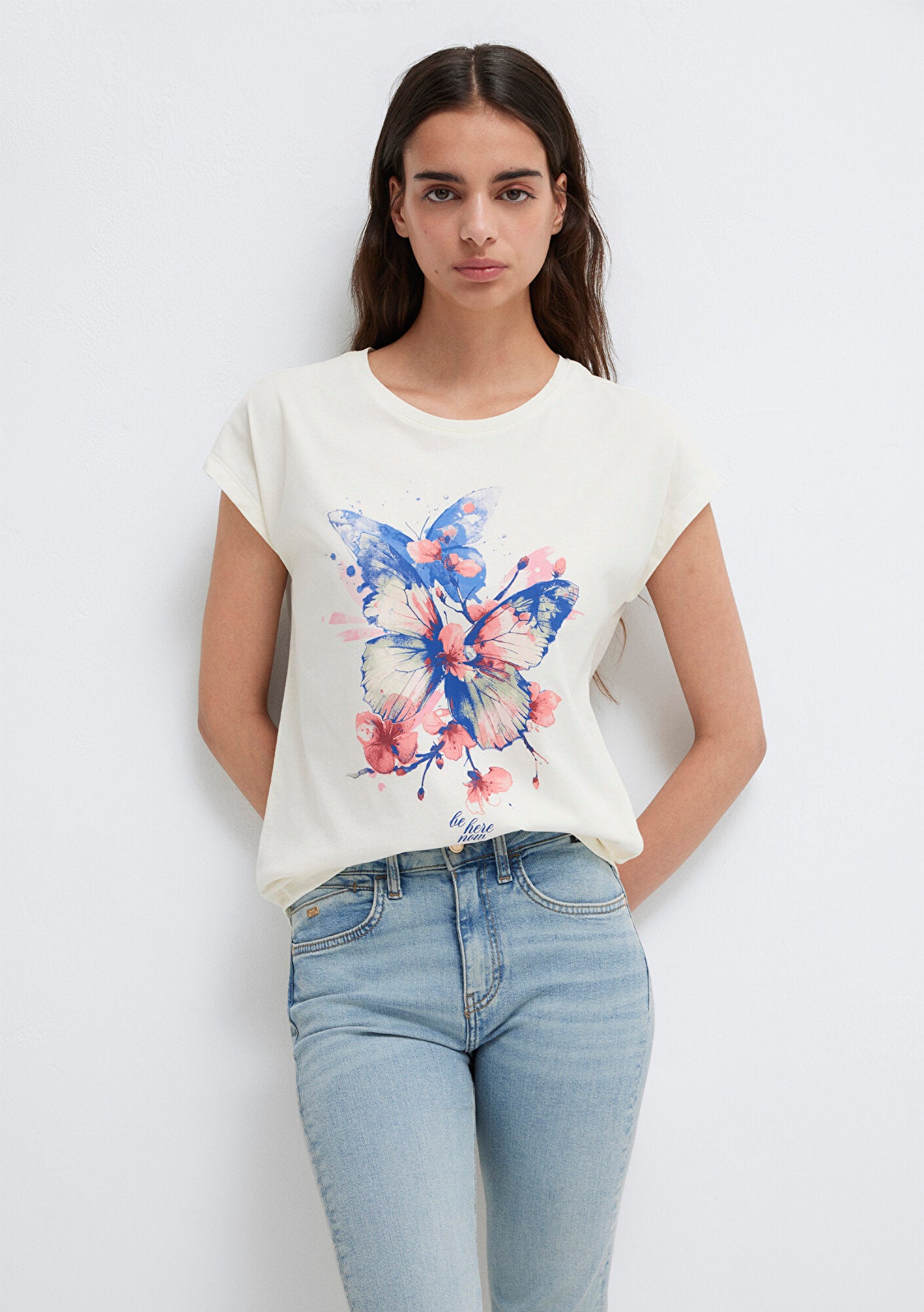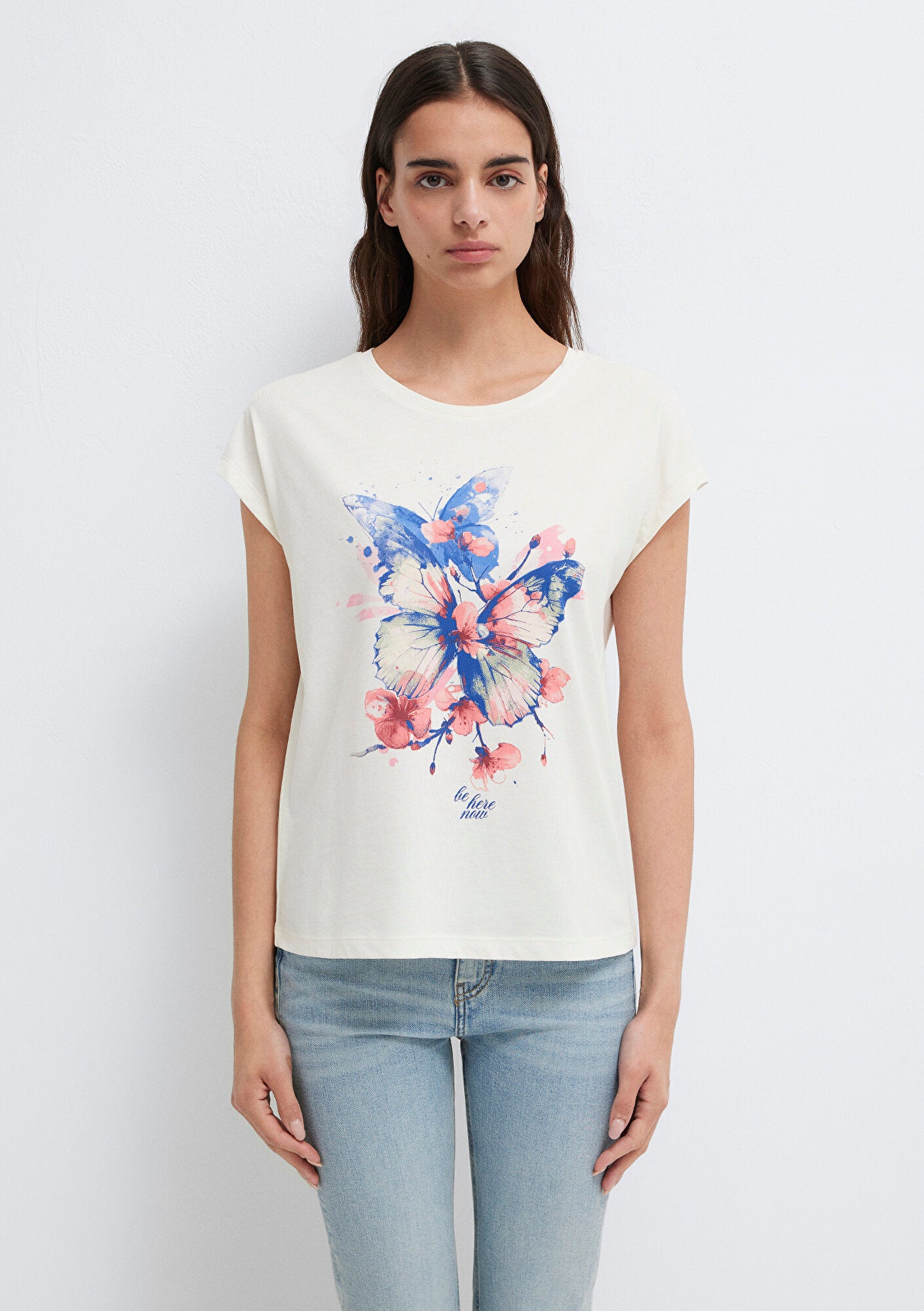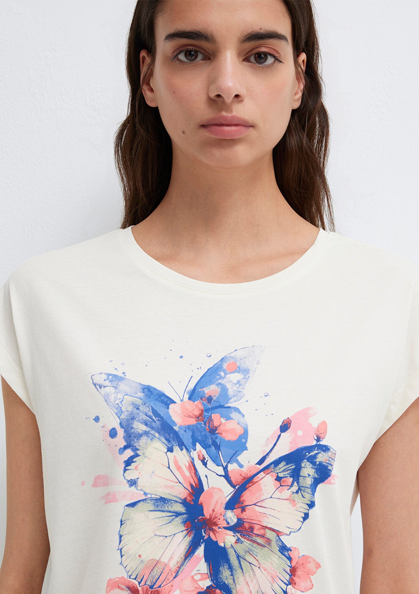 Butterfly Printed Ecru T-Shirt