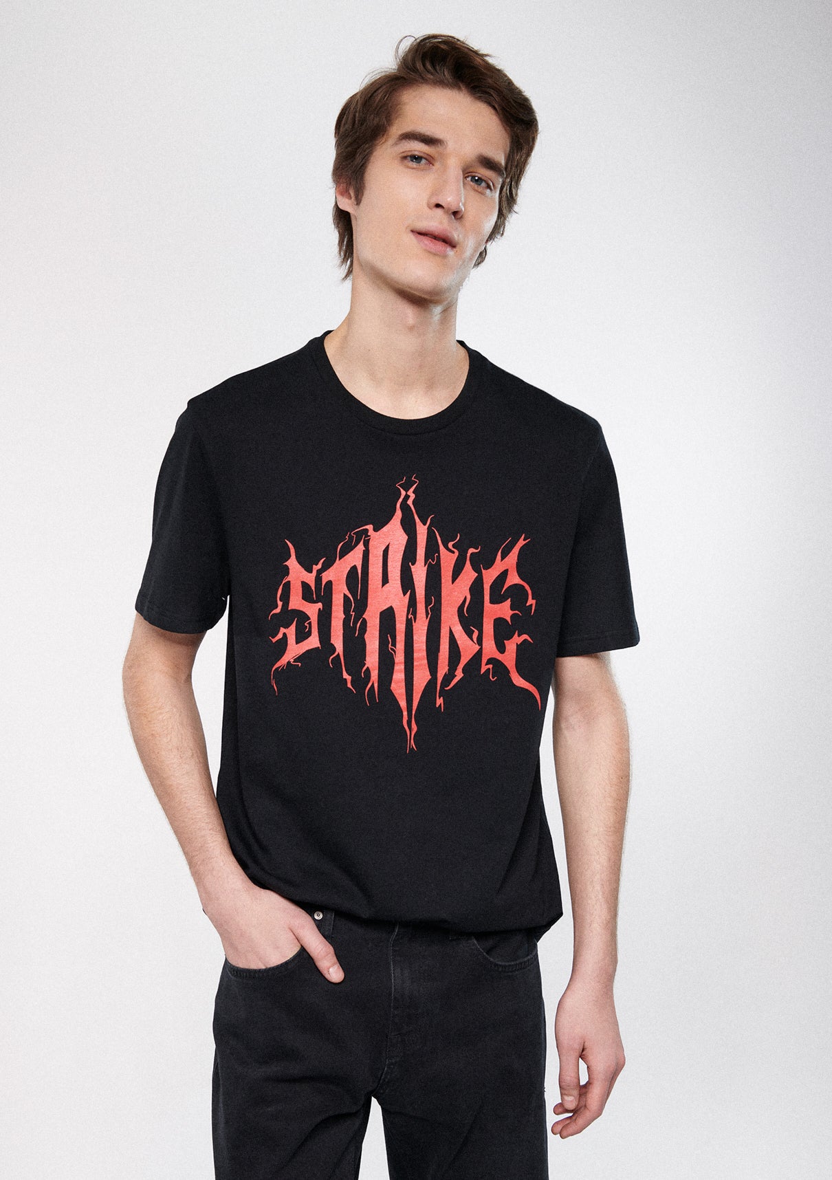 Strike Printed Black T-Shirt
