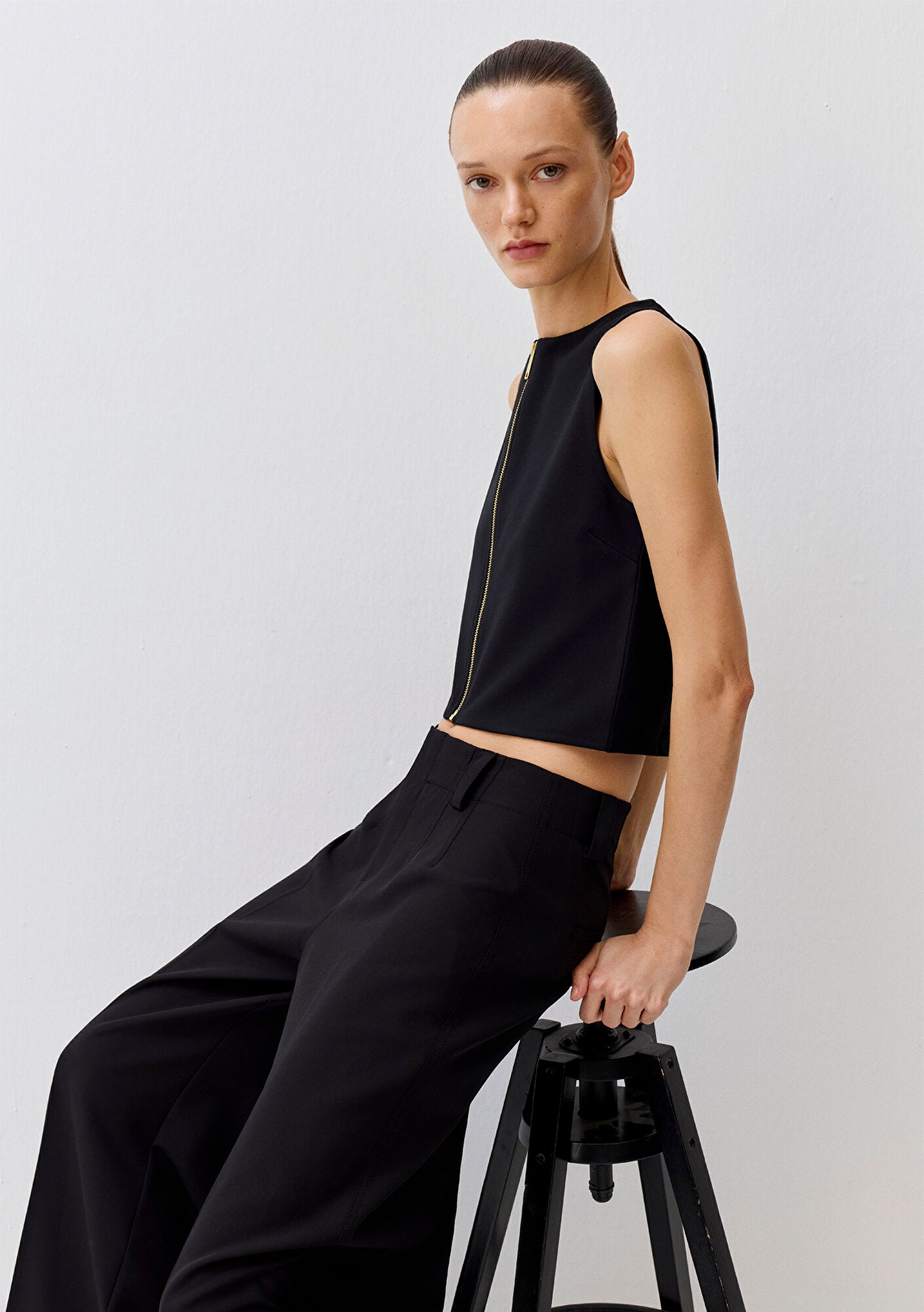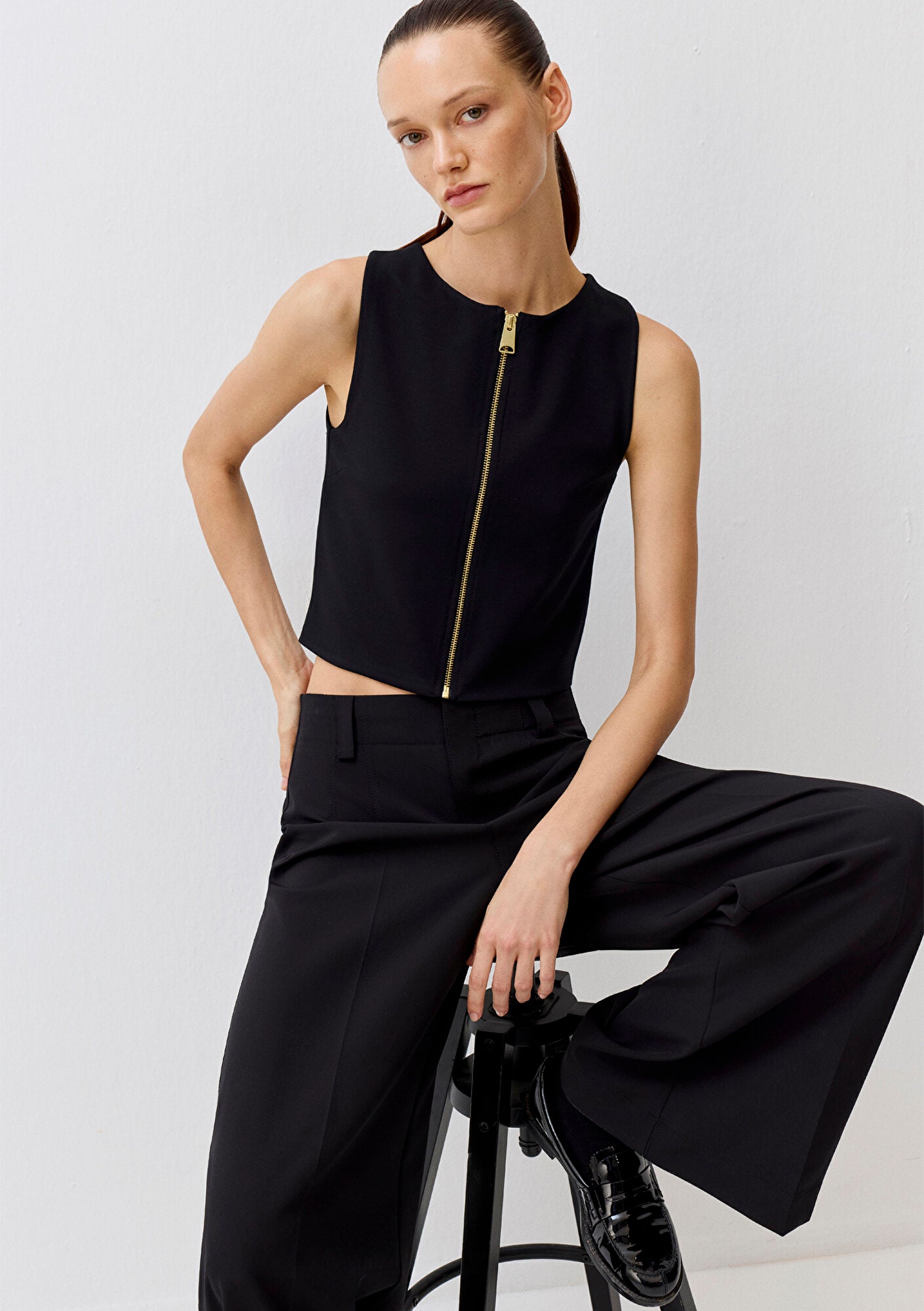 Zip Up Black Blouse