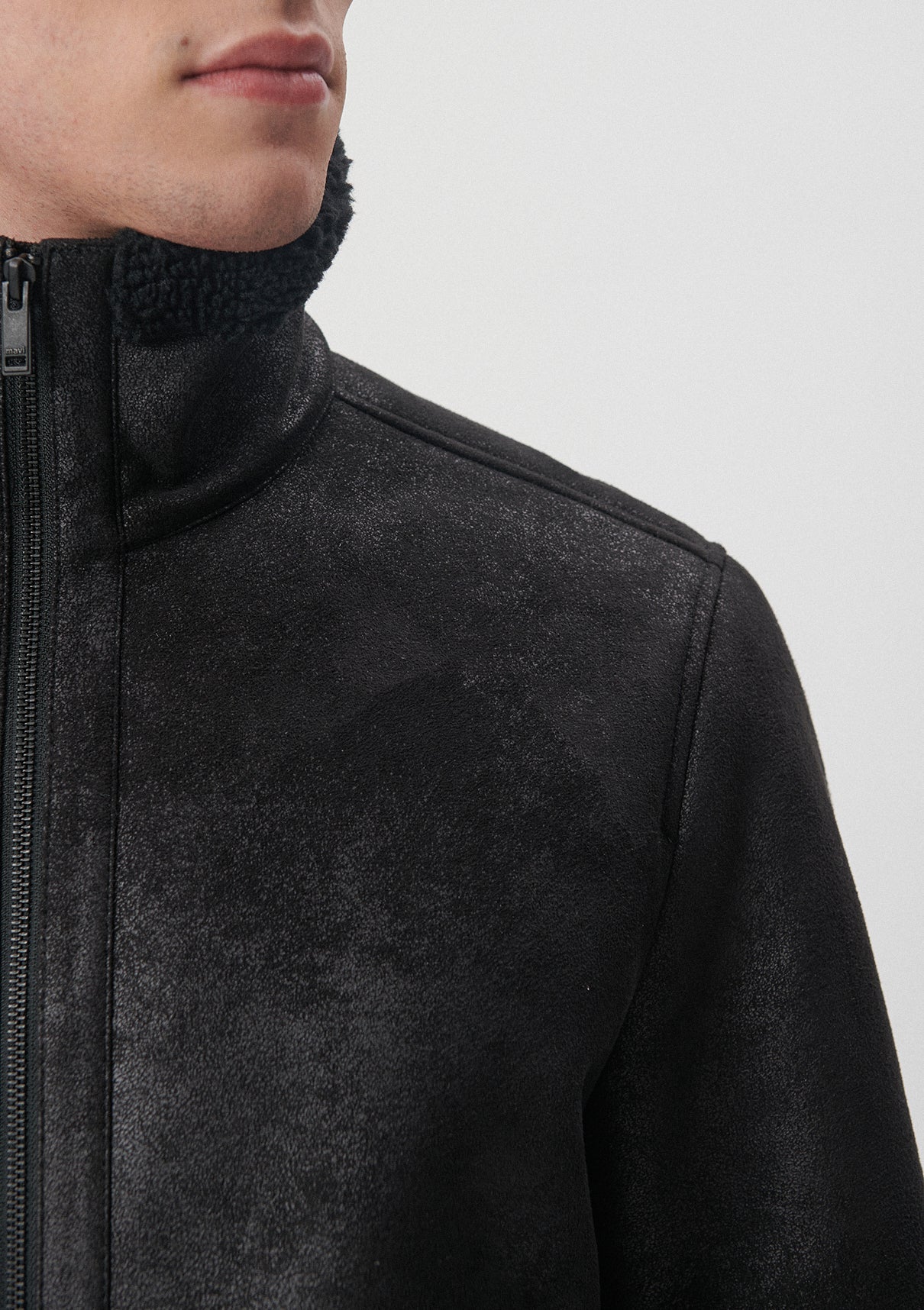 Black Faux Jeather Jacket from Mavi s mens collections