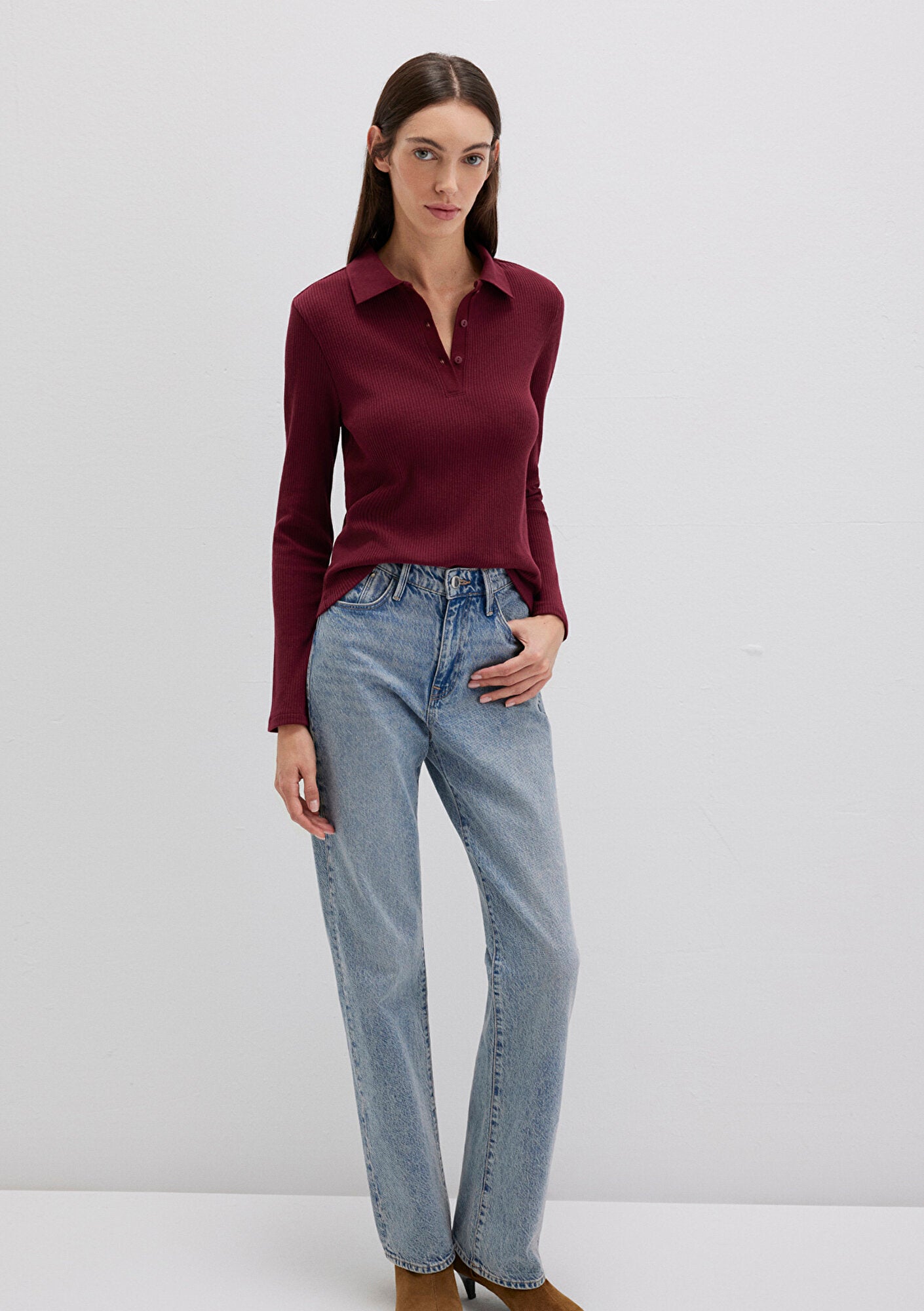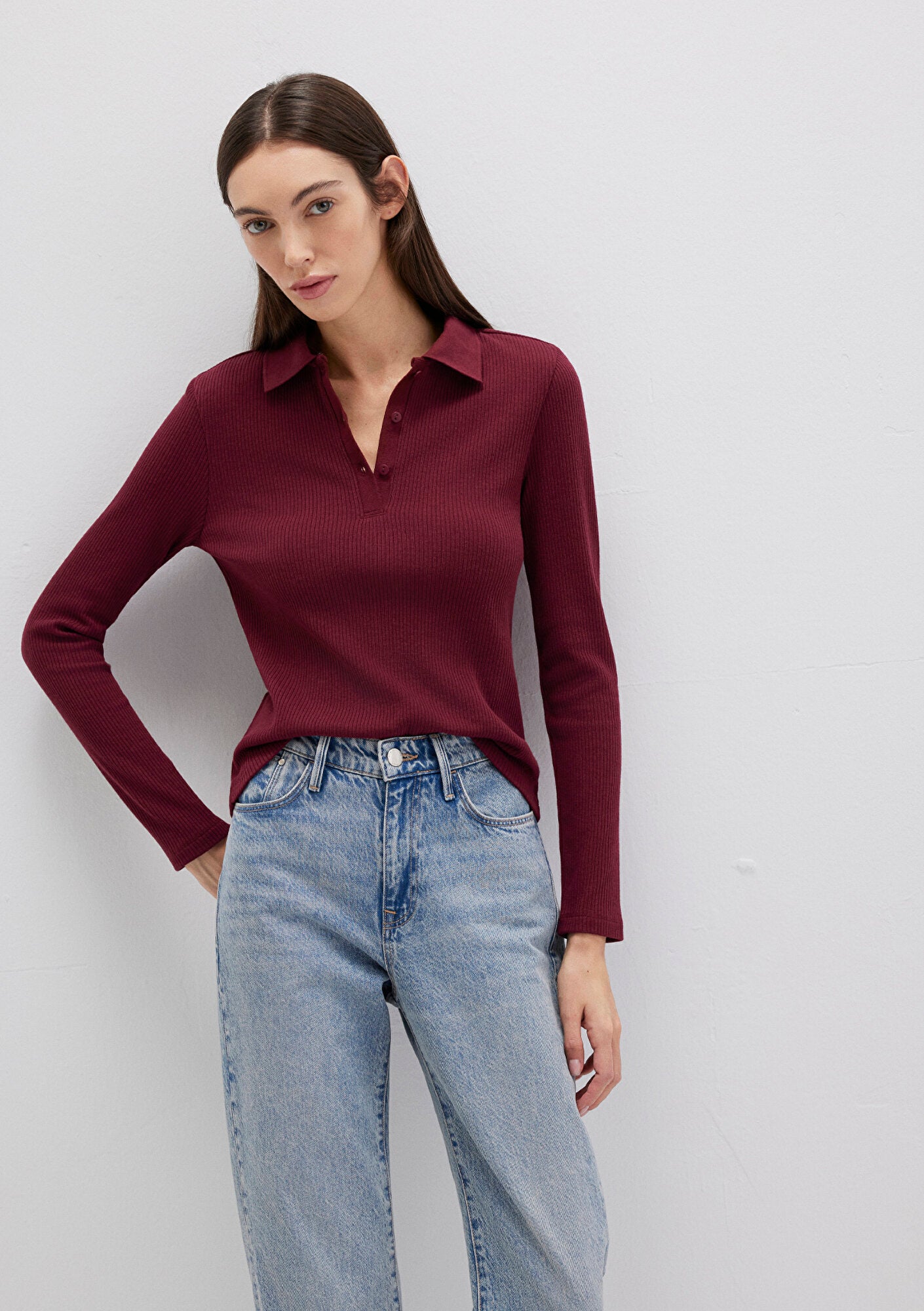 Burgundy Polo T-Shirt from Mavi s womens collection.
