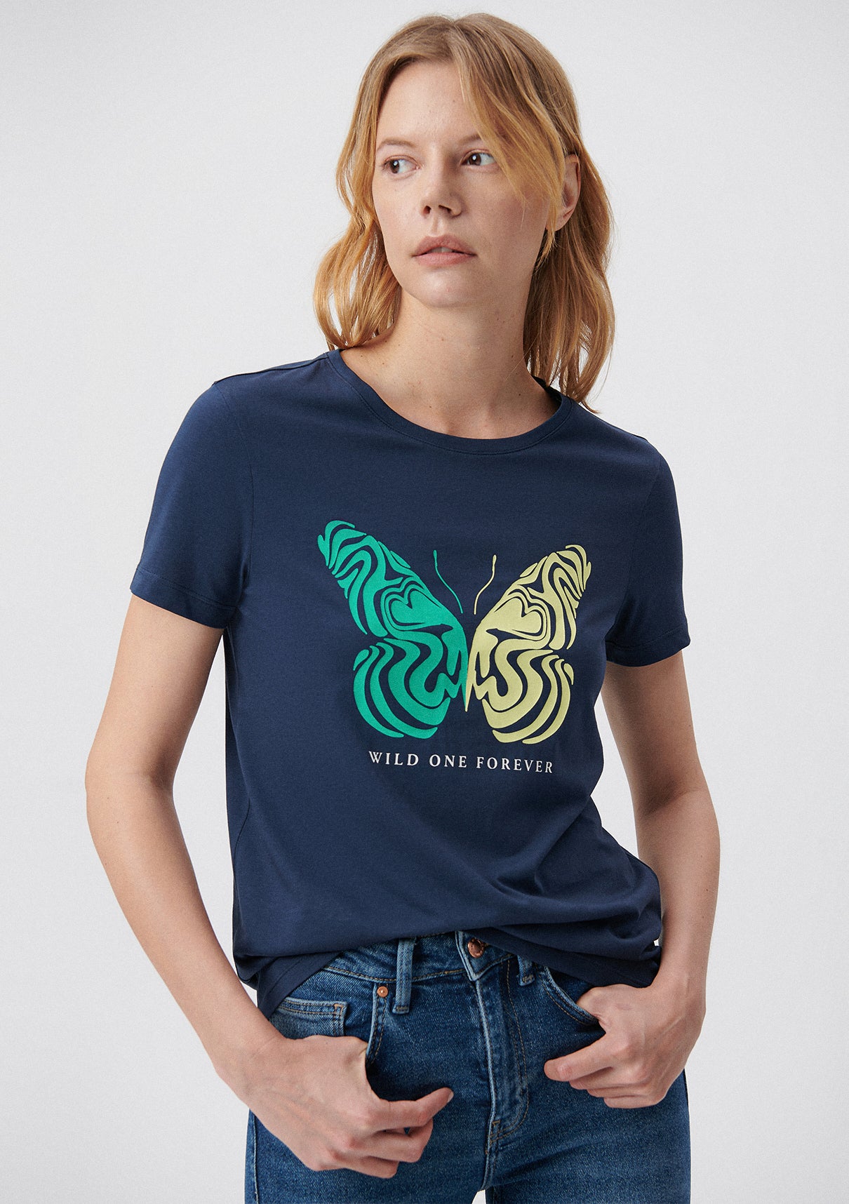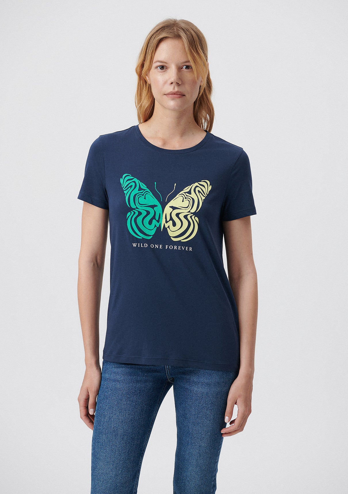 Kelebek Printed Blue T-Shirt from Mavi s womens collection