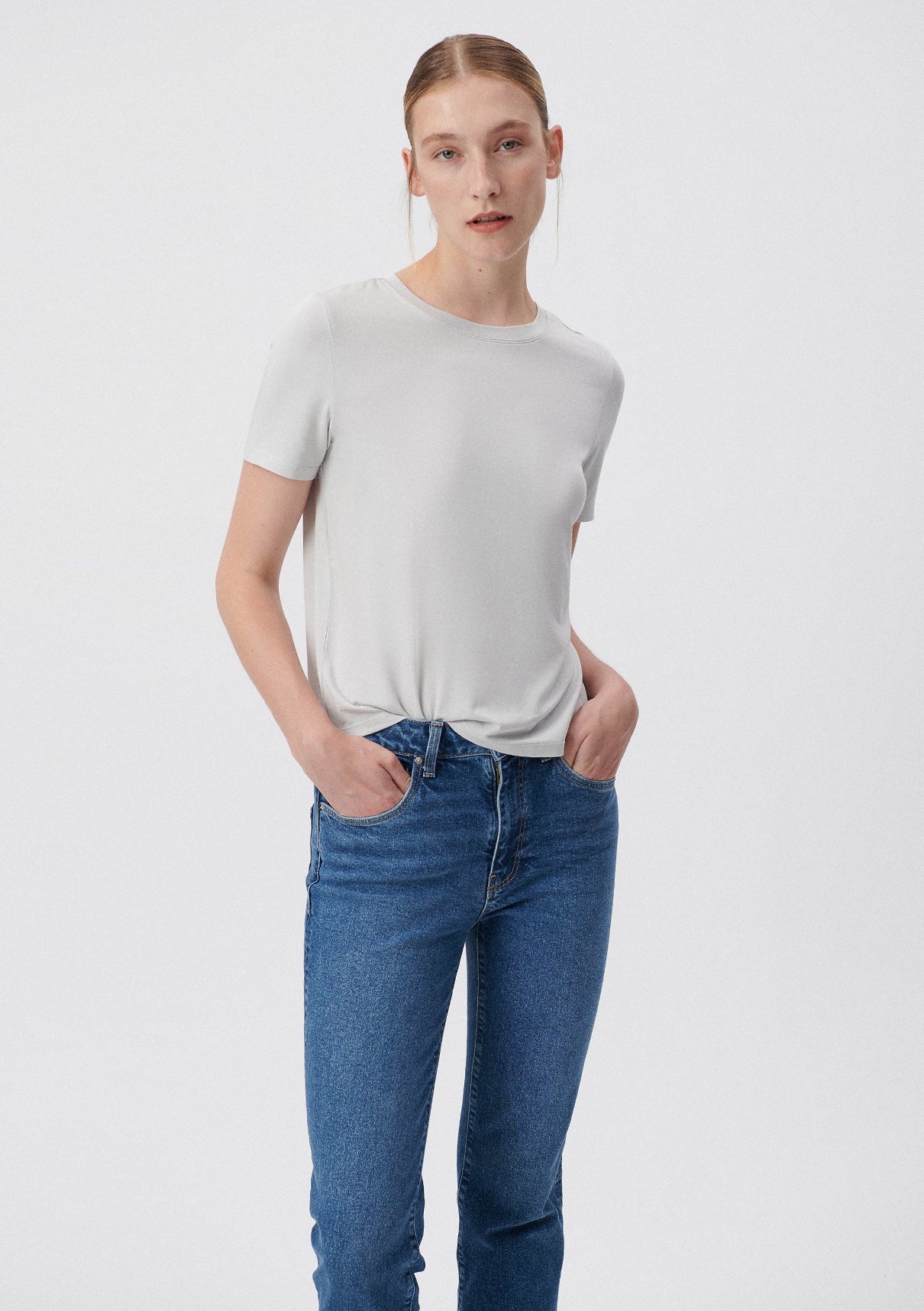 Crew Neck Grey Basic T-Shirt from Mavi s womens collection