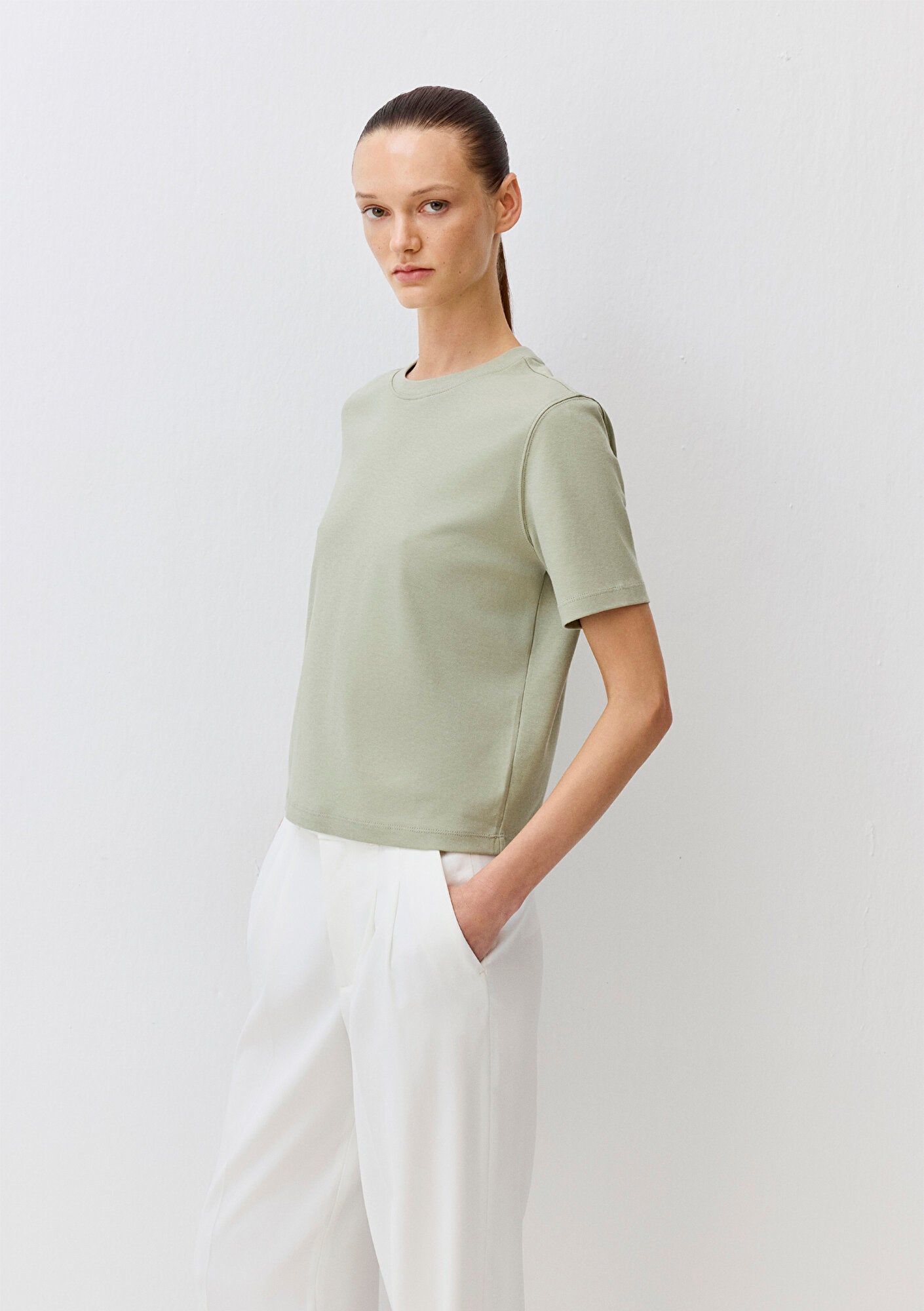 Green Basic Interlock T-Shirt from Mavi s women collection.