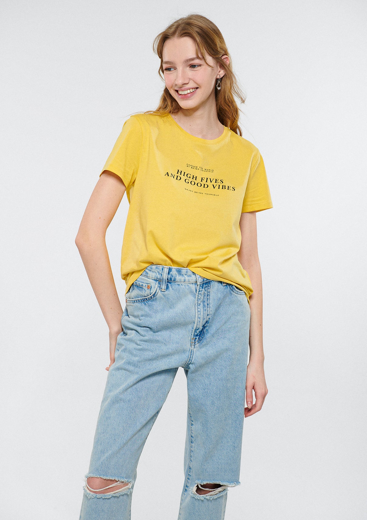 Discover High Fives and Good Vibes Printed Brown T-Shirt from Mavi s Womens Collection
