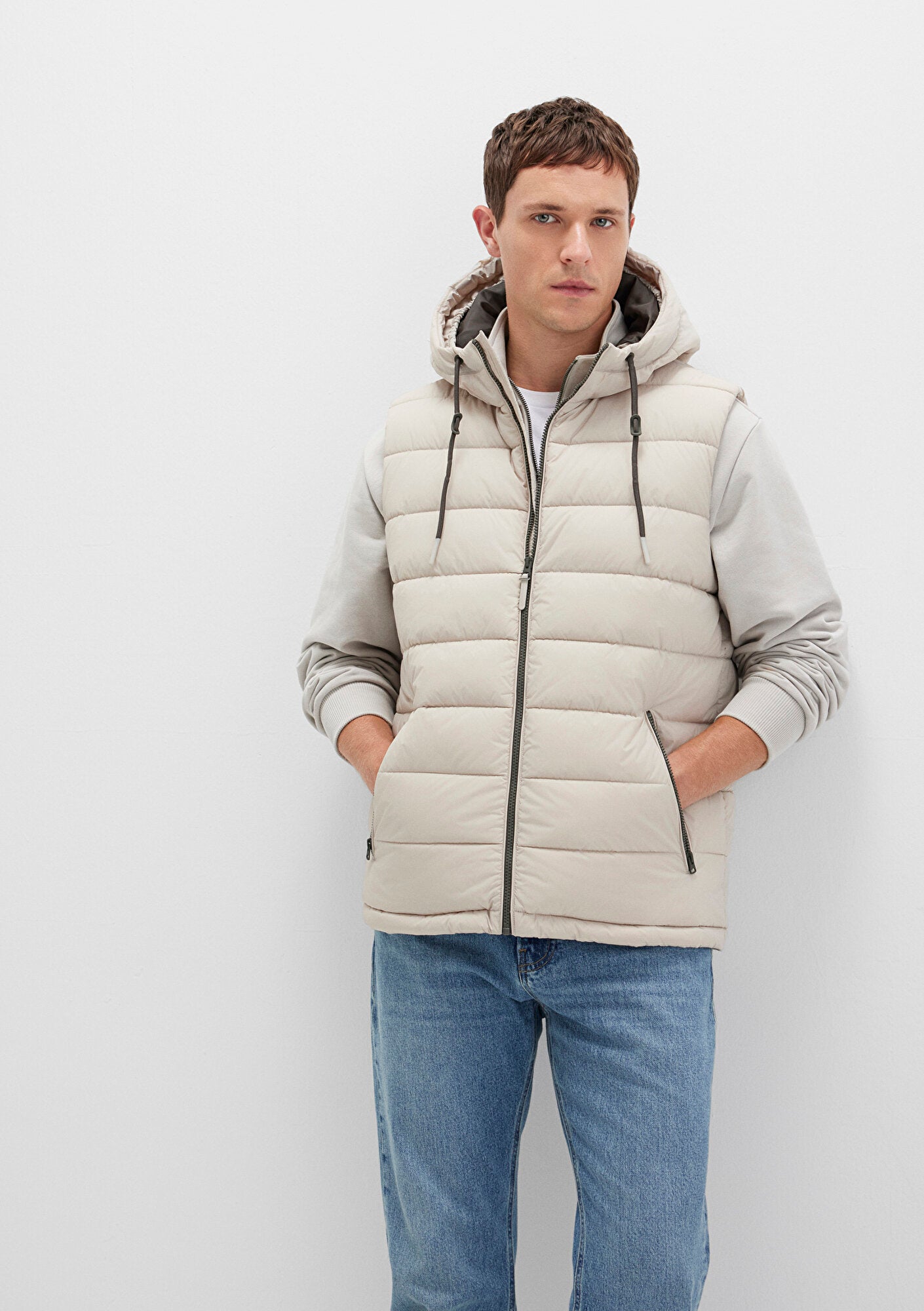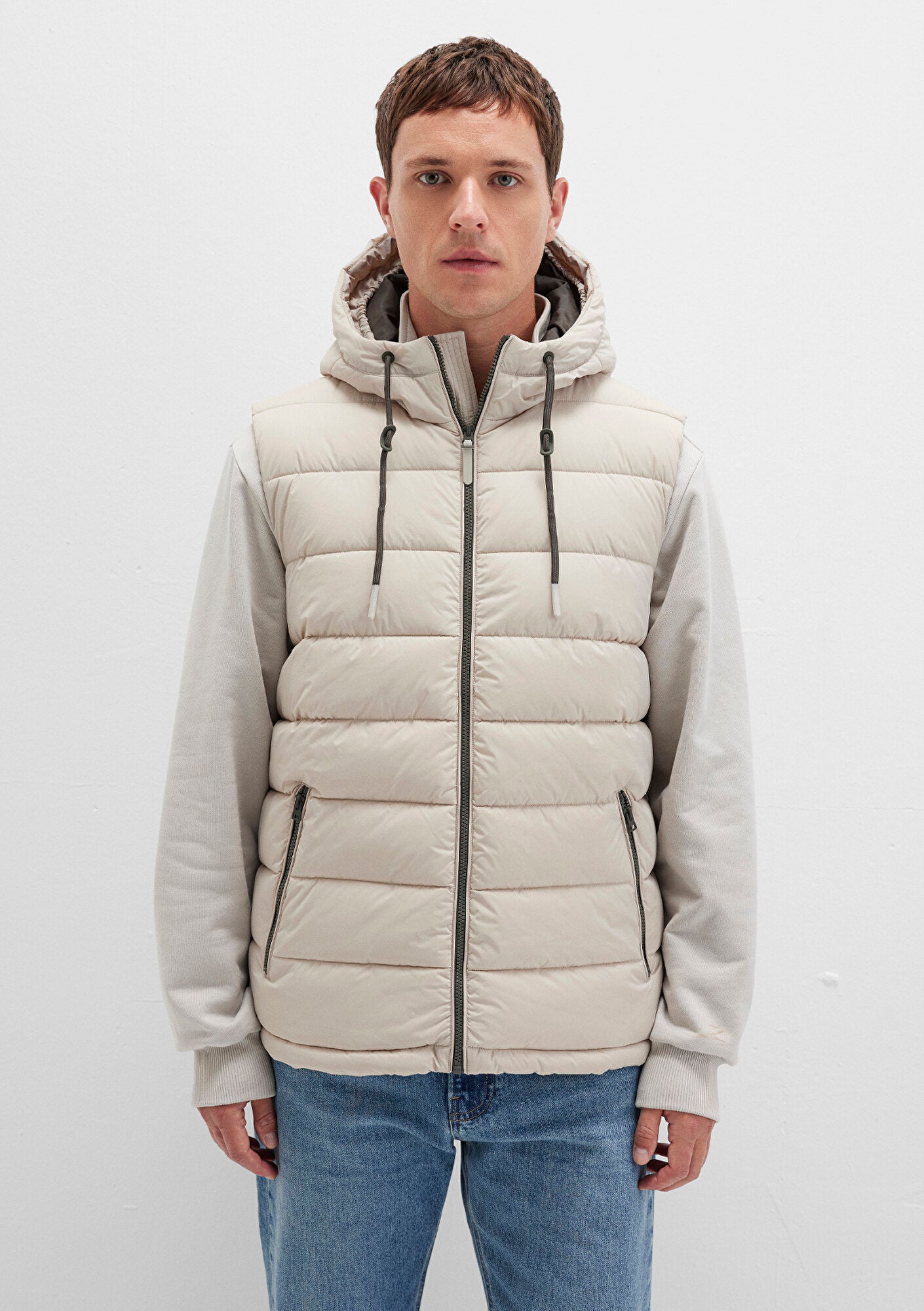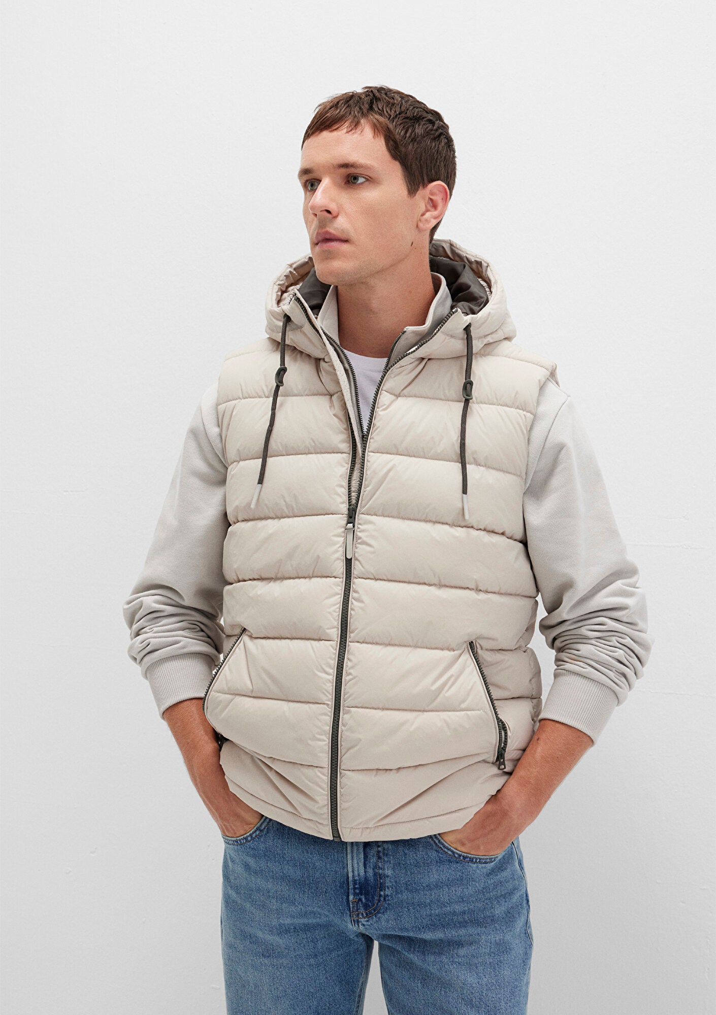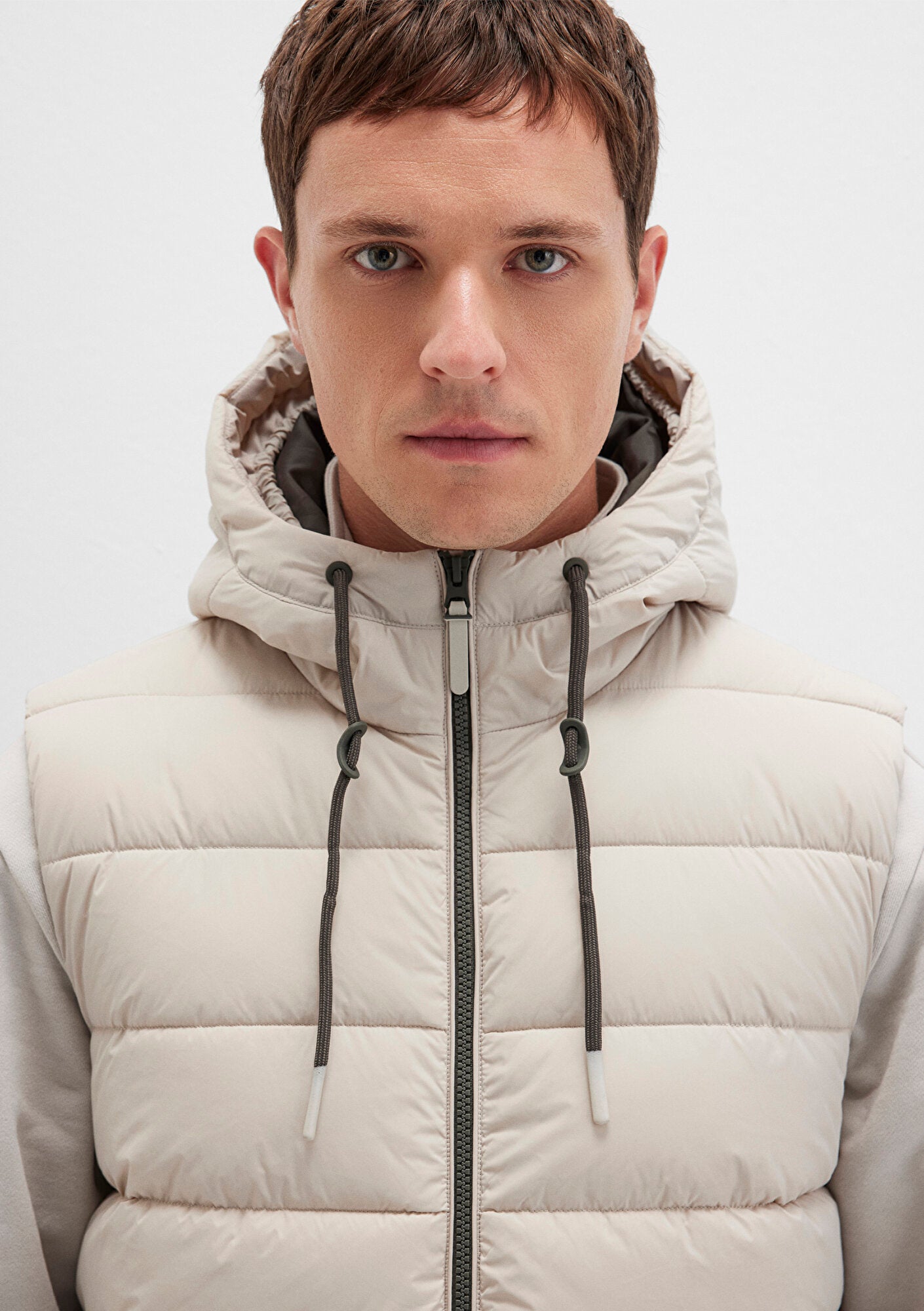 Hooded Beige Puffer Vest