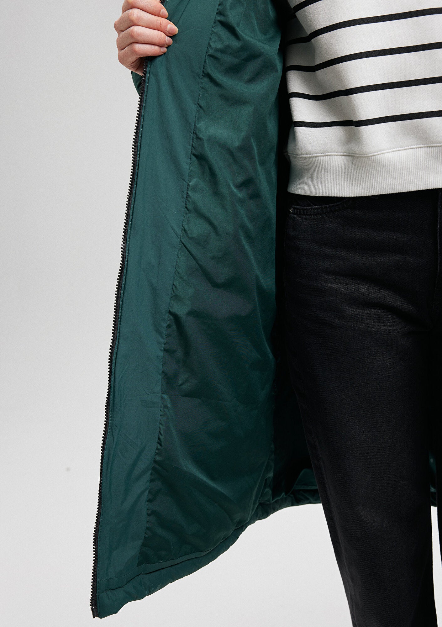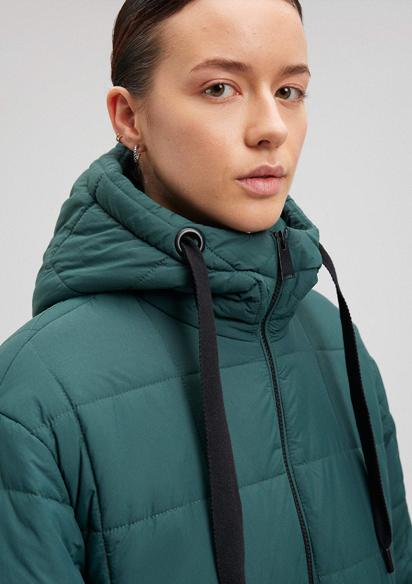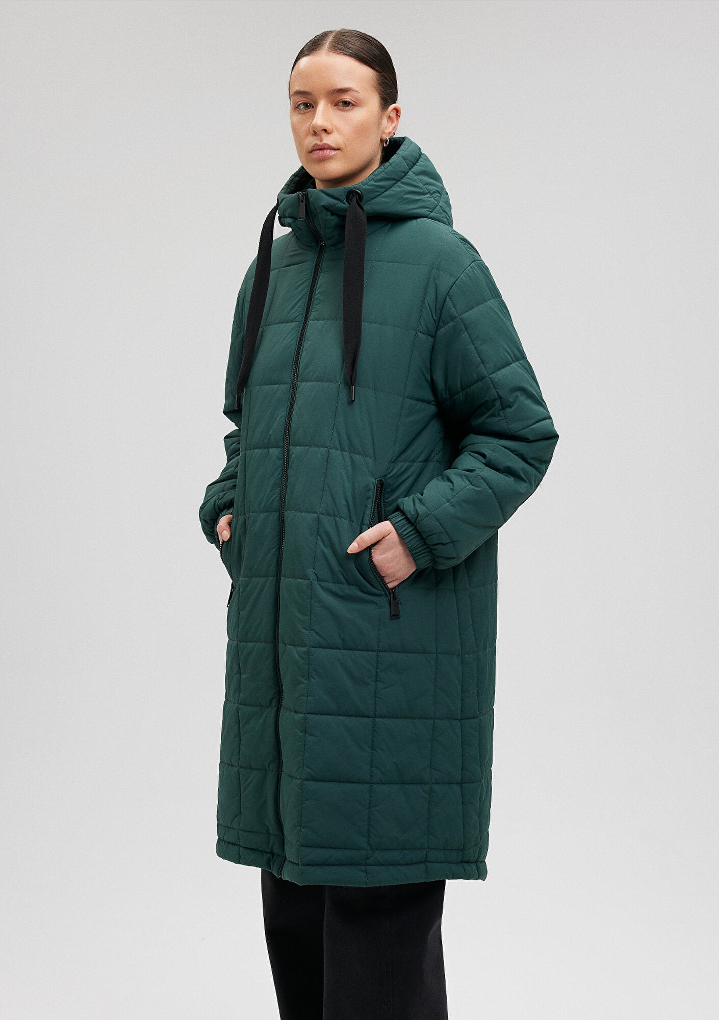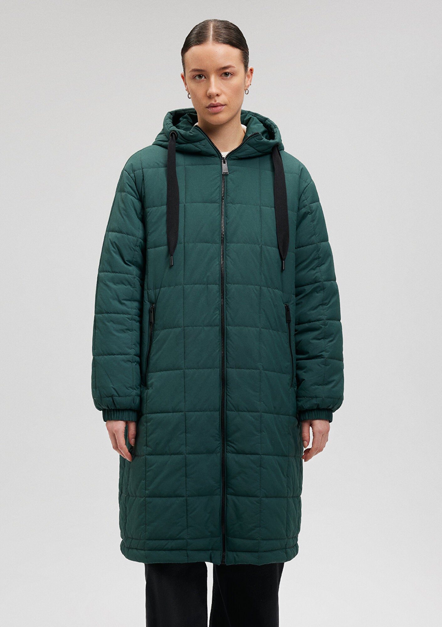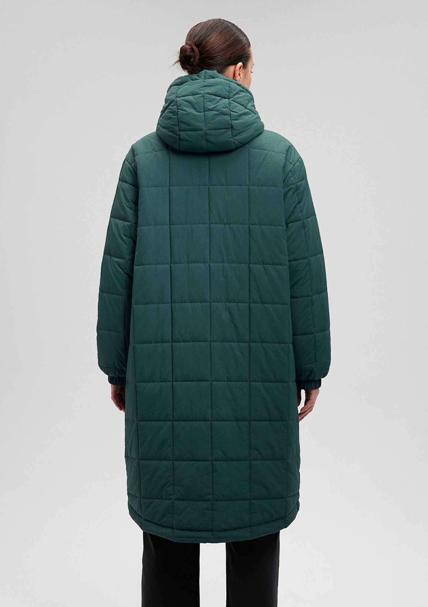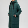 Hooded Quilted Green Long Jacket
