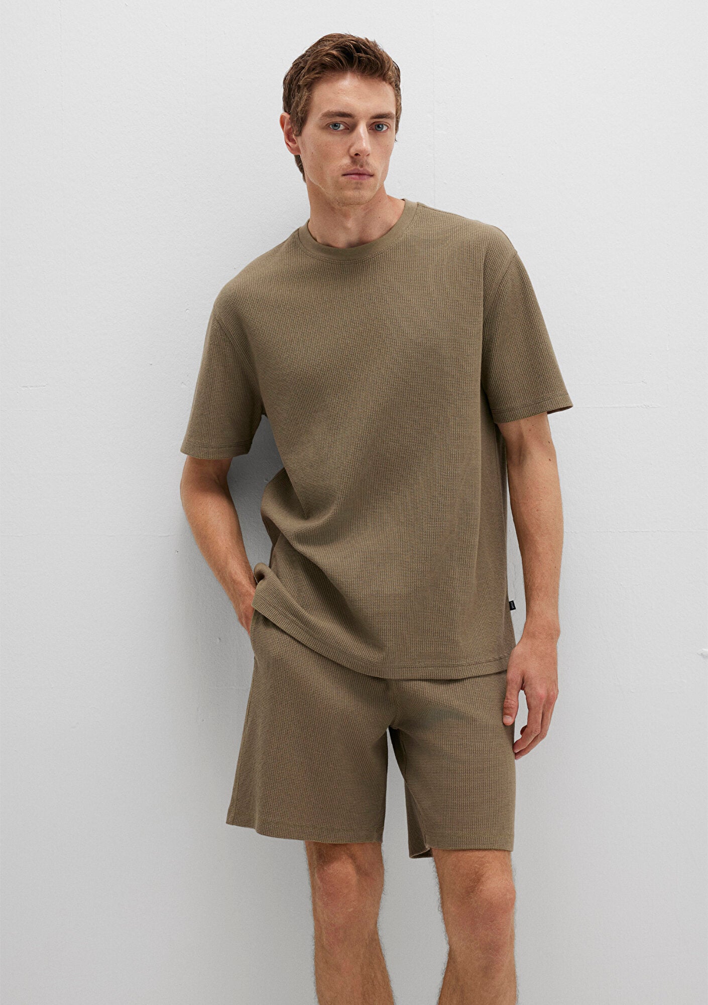 Khaki Textured Basic T-Shirt