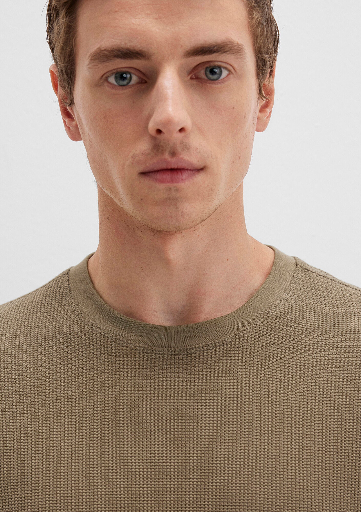 Khaki Textured Basic T-Shirt from Mavi s mens collection.