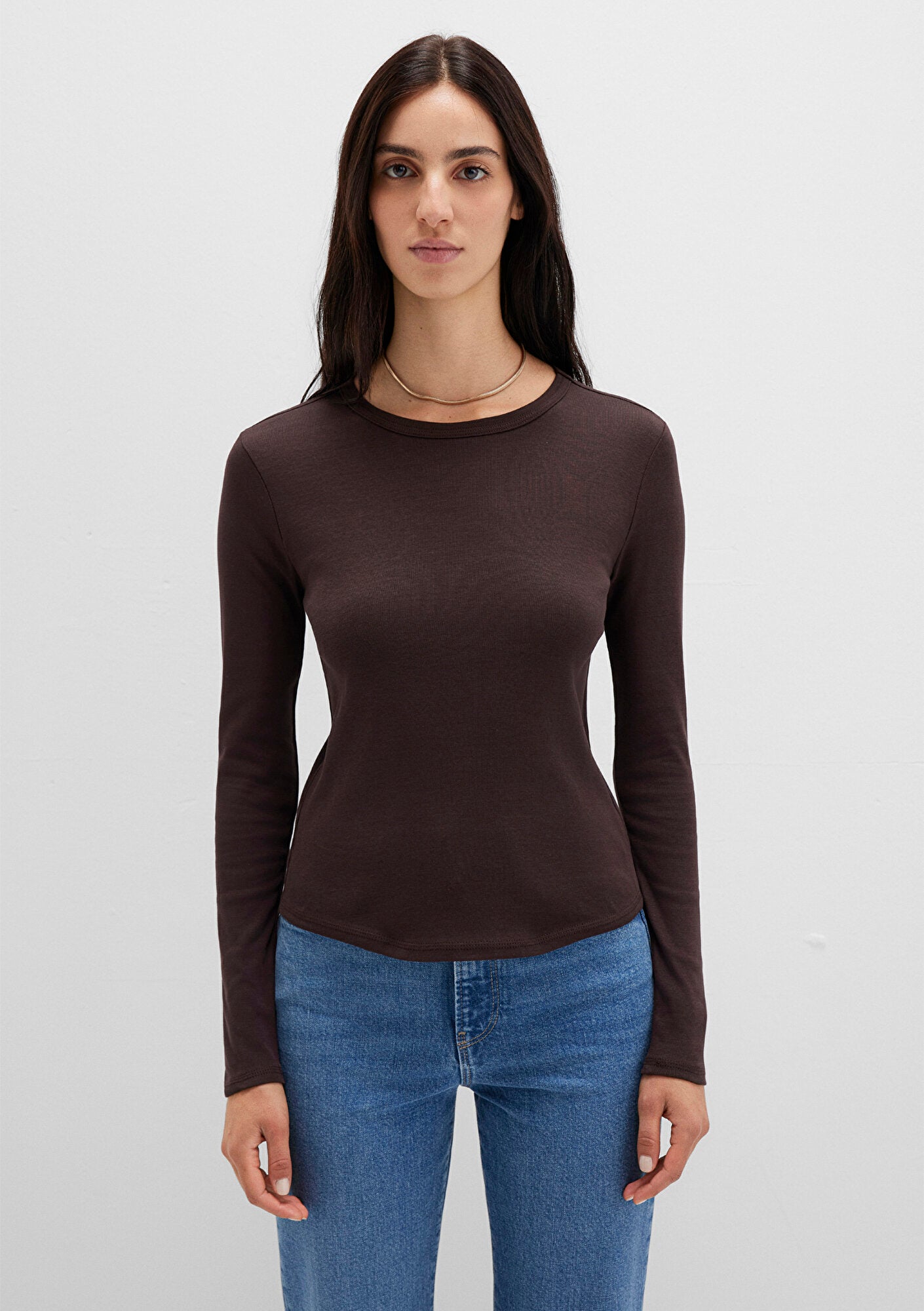 Long Sleeve Brown Basic T-Shirt