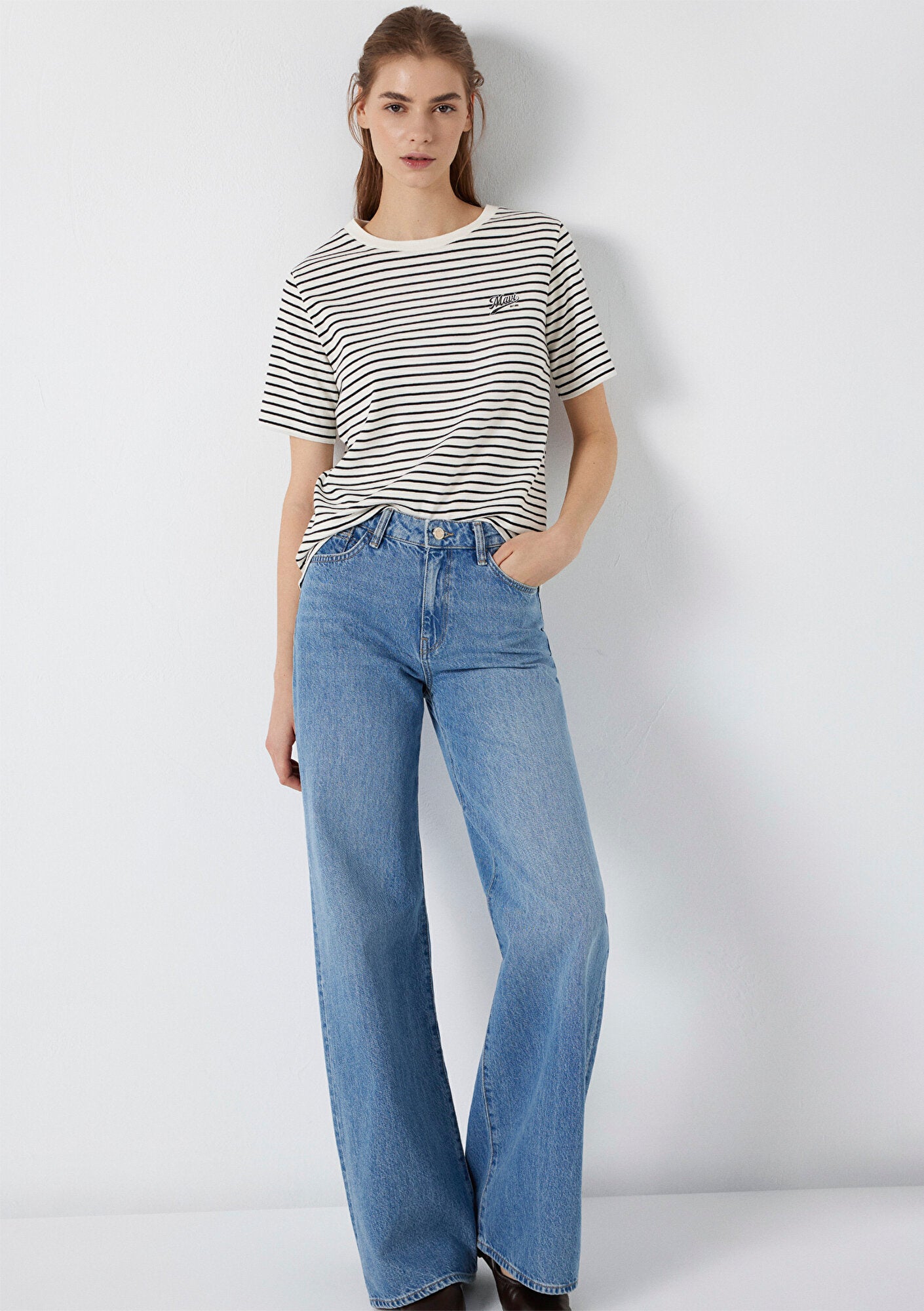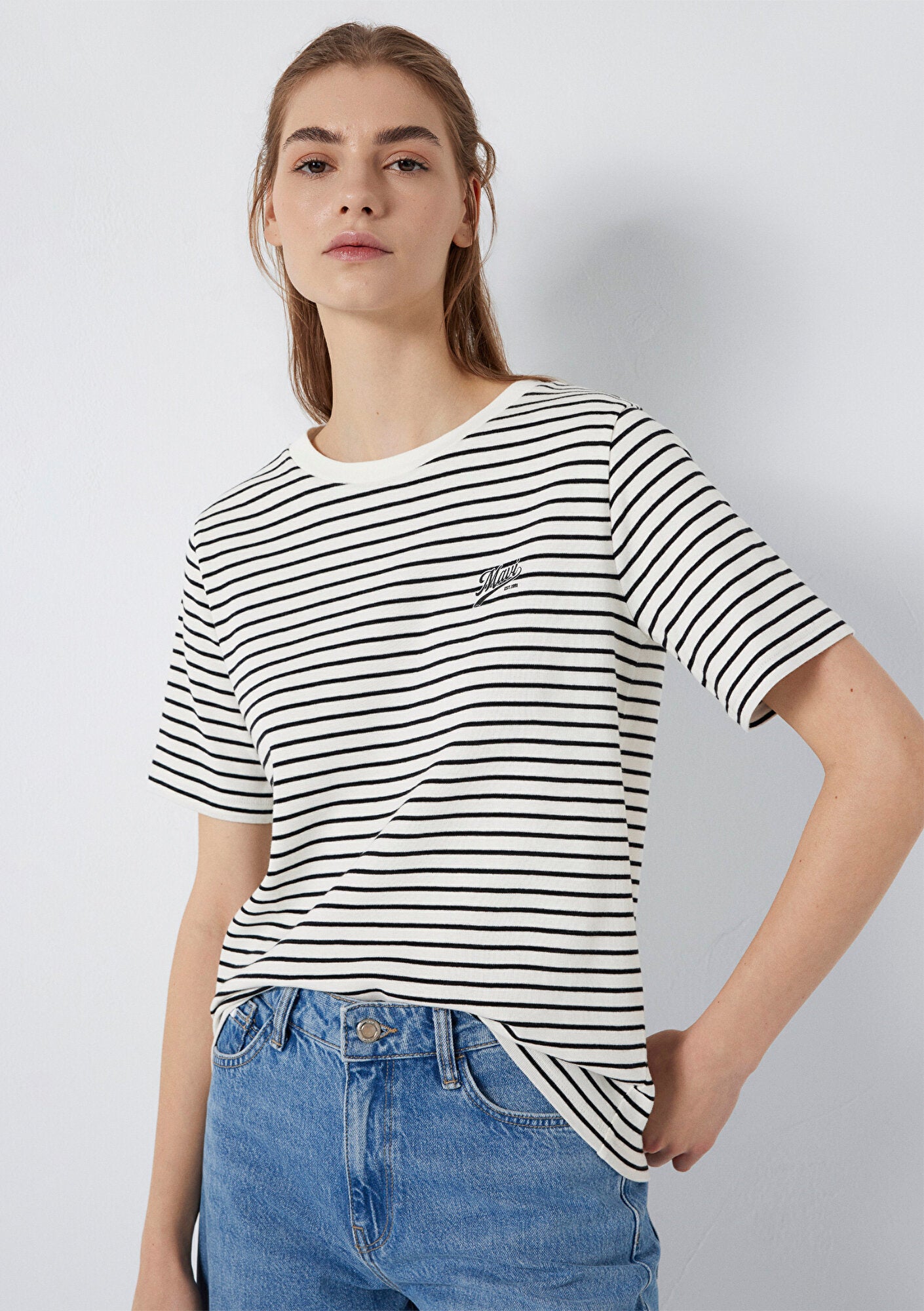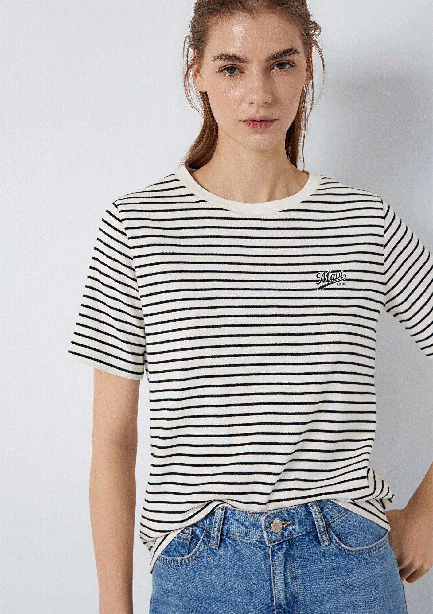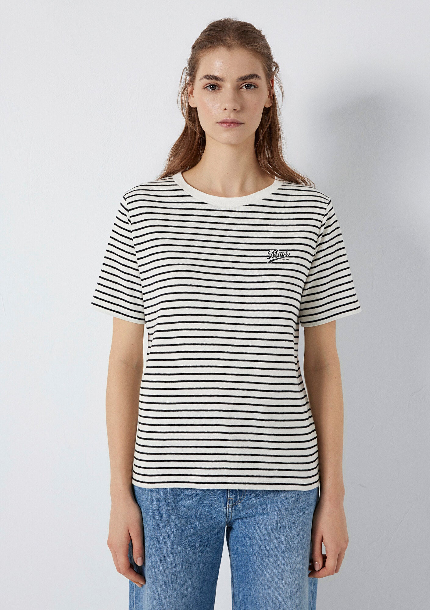 Mavi Logo Printed Striped T-Shirt