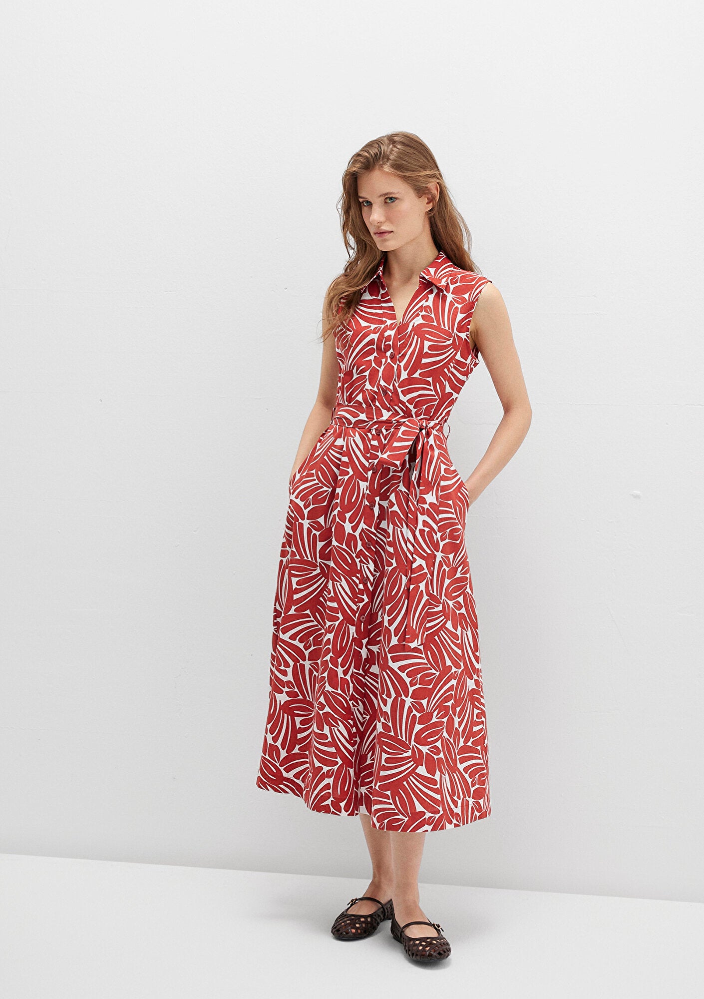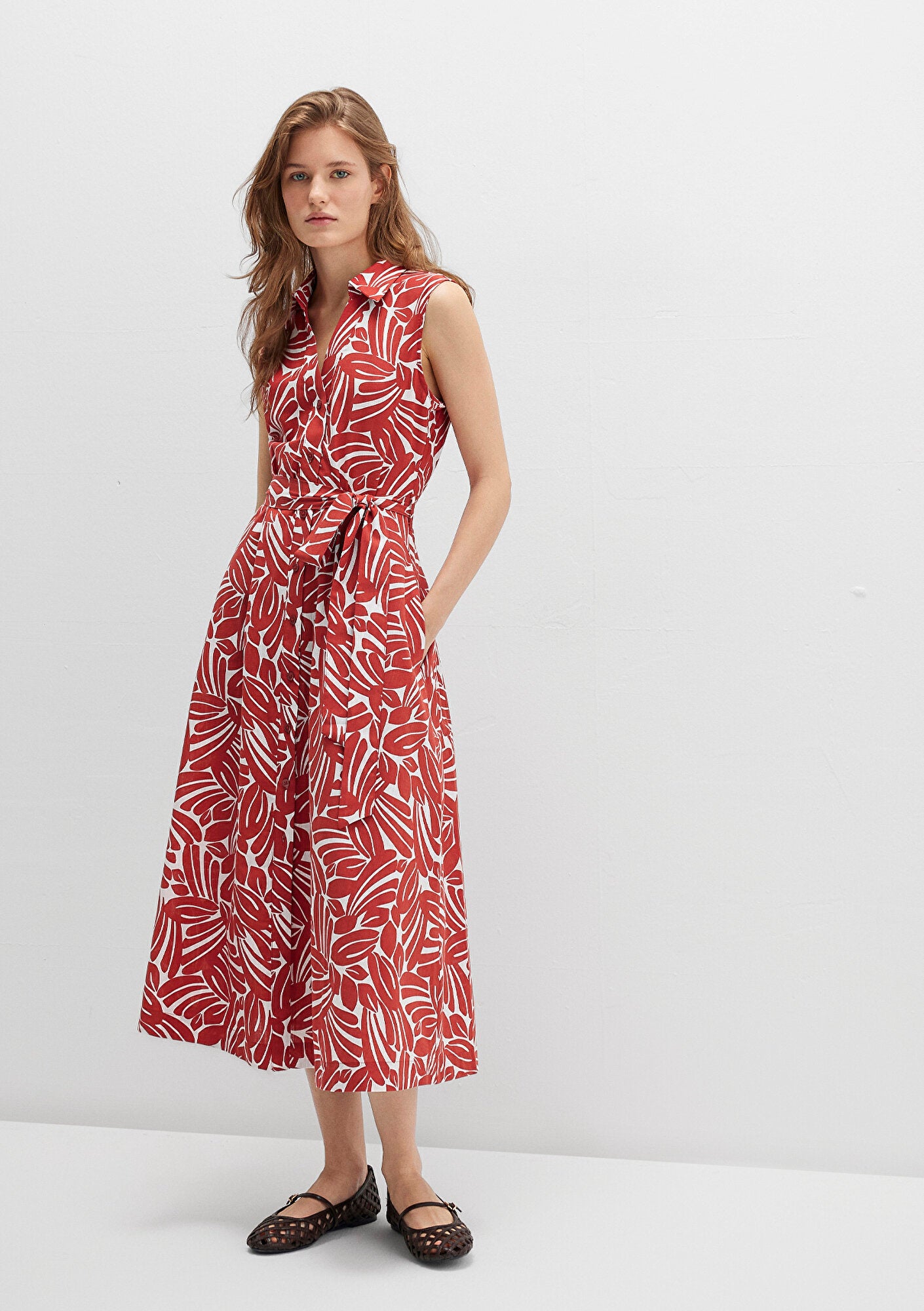 Printed Long Red Dress
