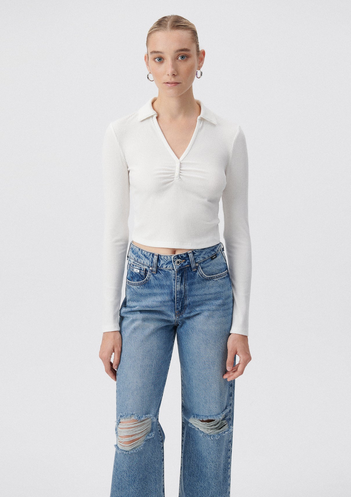 Ruched White Sweater from Mavi s womens collection