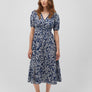 V Neck Printed Navy Dress