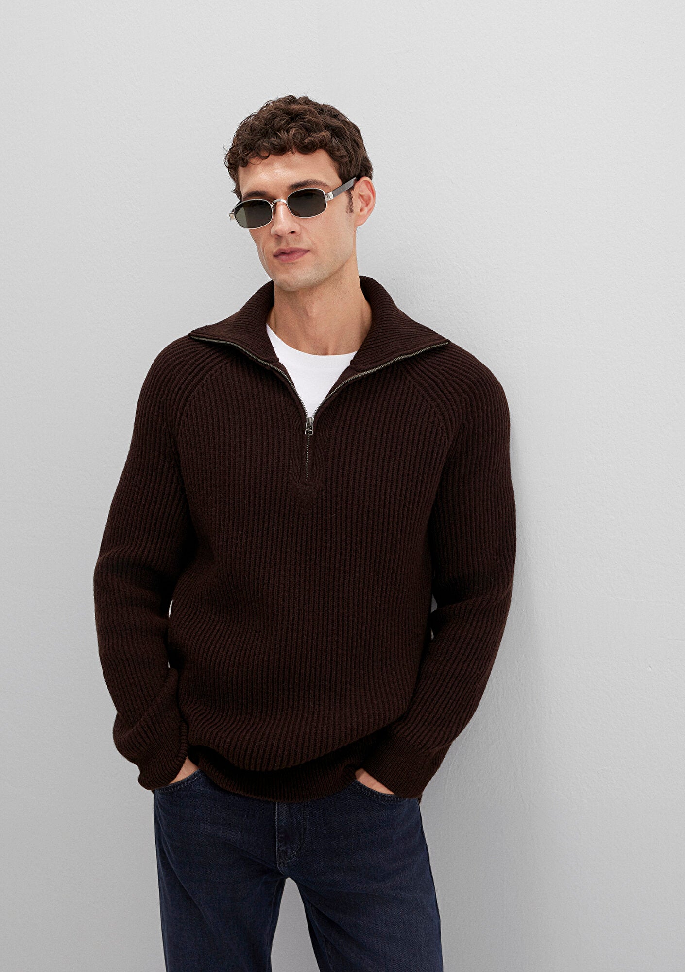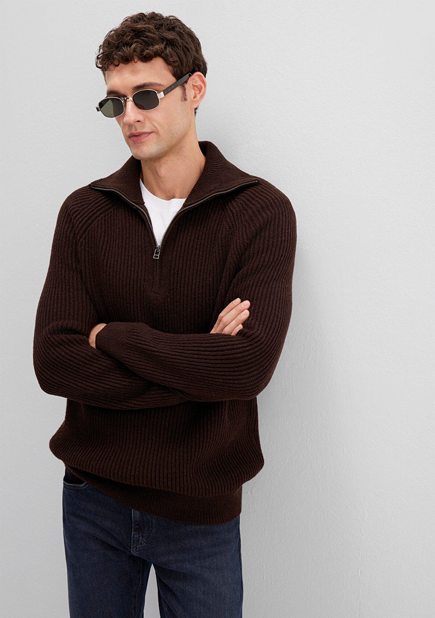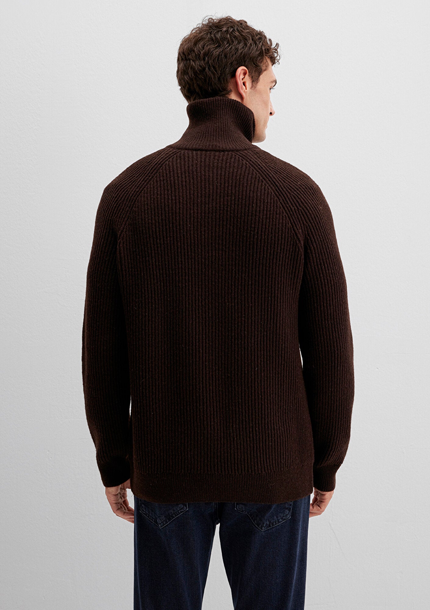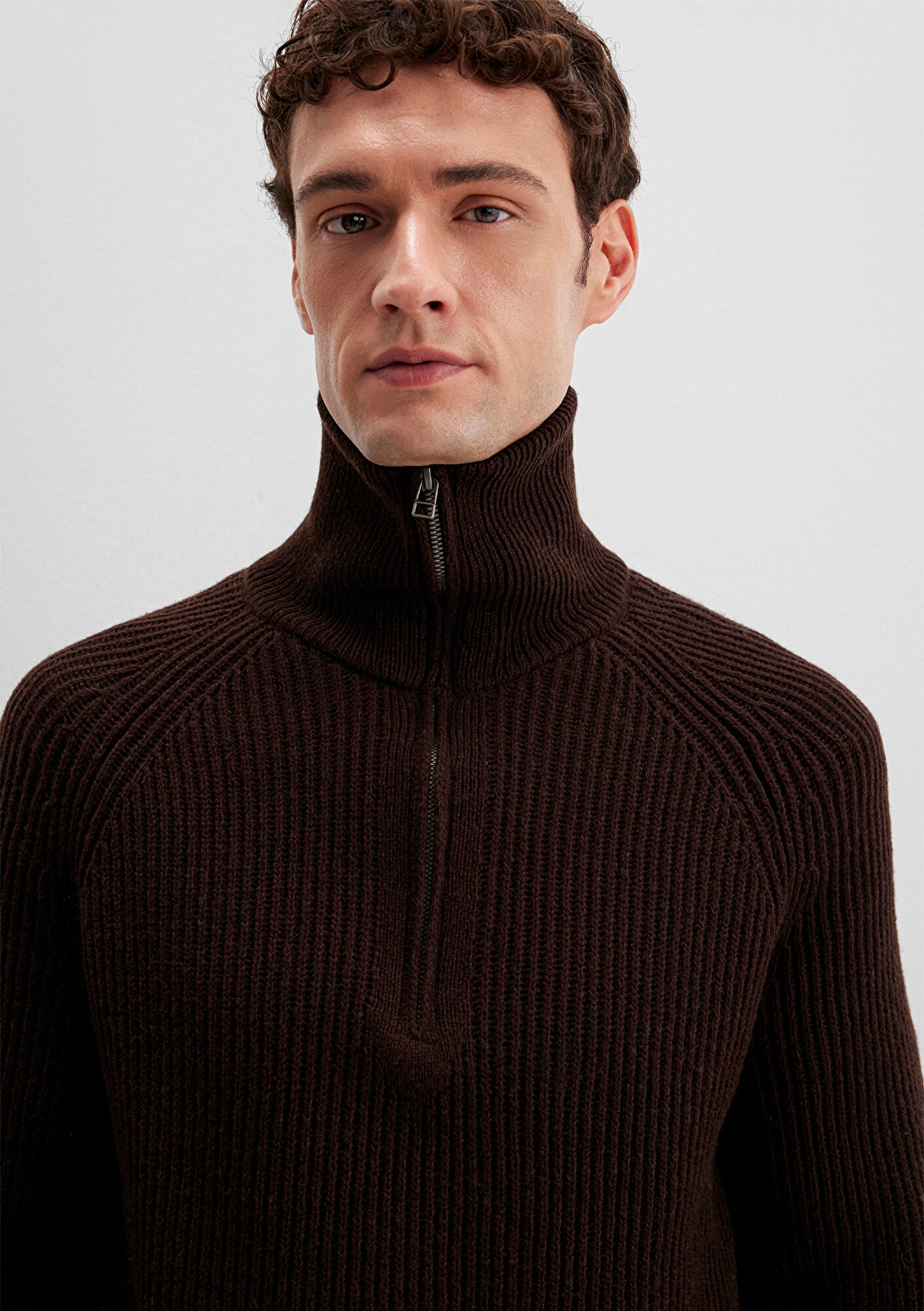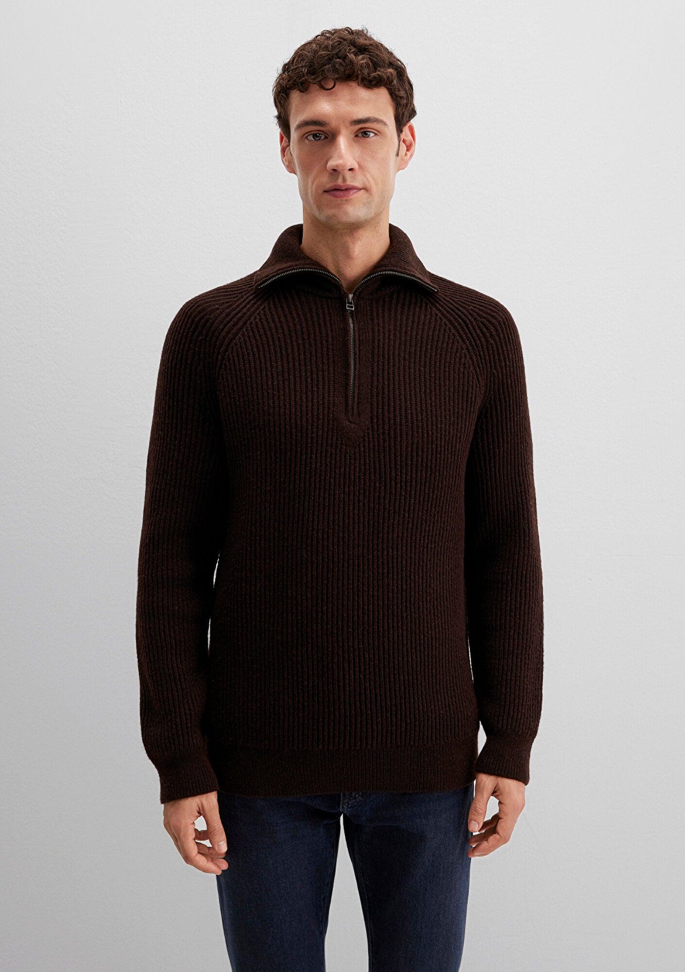 Wool Half Zip Brown Cardigan